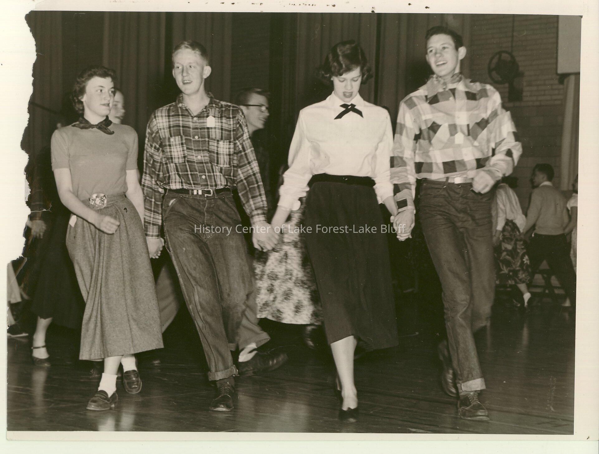 Lake Forest High School students at a dance. Stamped on the back: "Photograph By Robert H. Noble 659 E. Green Briar Lane Lake Forest, Illinois"