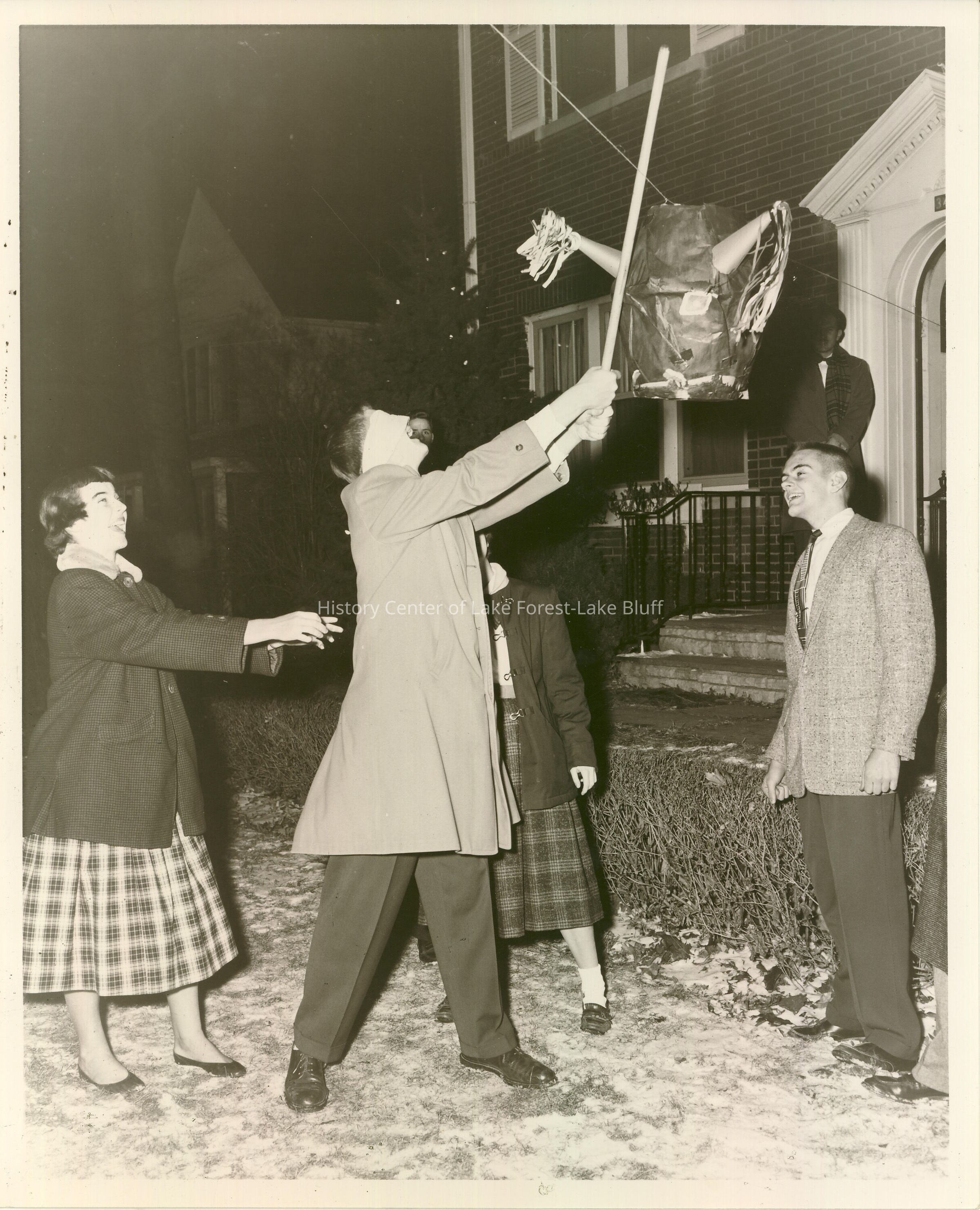Students hit a bull shaped pinata