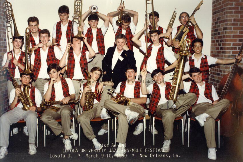 Lake Forest High School band members at 21st Annual Loyola University Jazz Ensemble Festival, March 9-10, 1990, in New Orlean, La. George Borich served as LFHS band director 1963-1990.