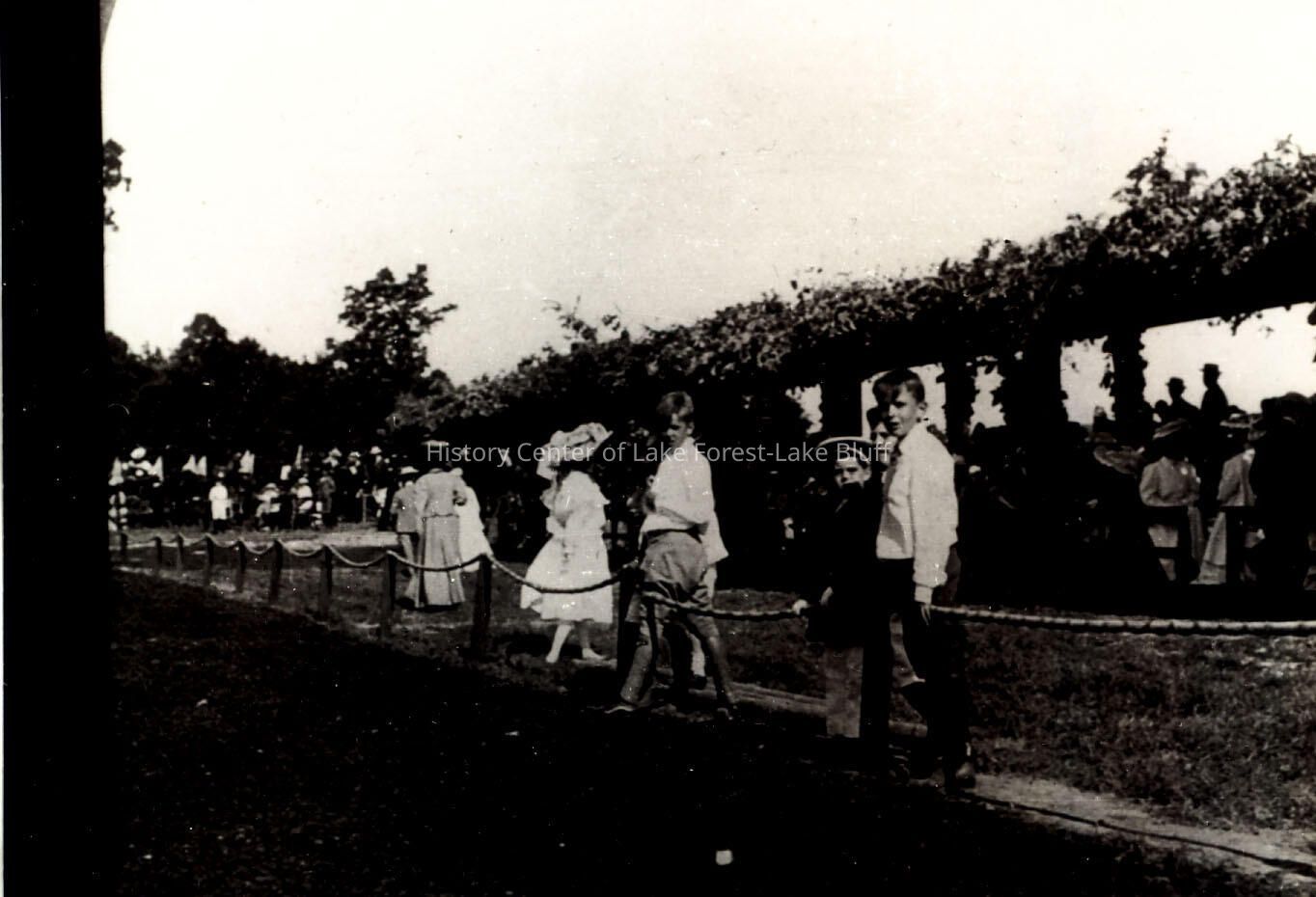 Black and white toned photograph of the Lake Forest Horse Show. Children are watching behind a roped area, looking at the photographer