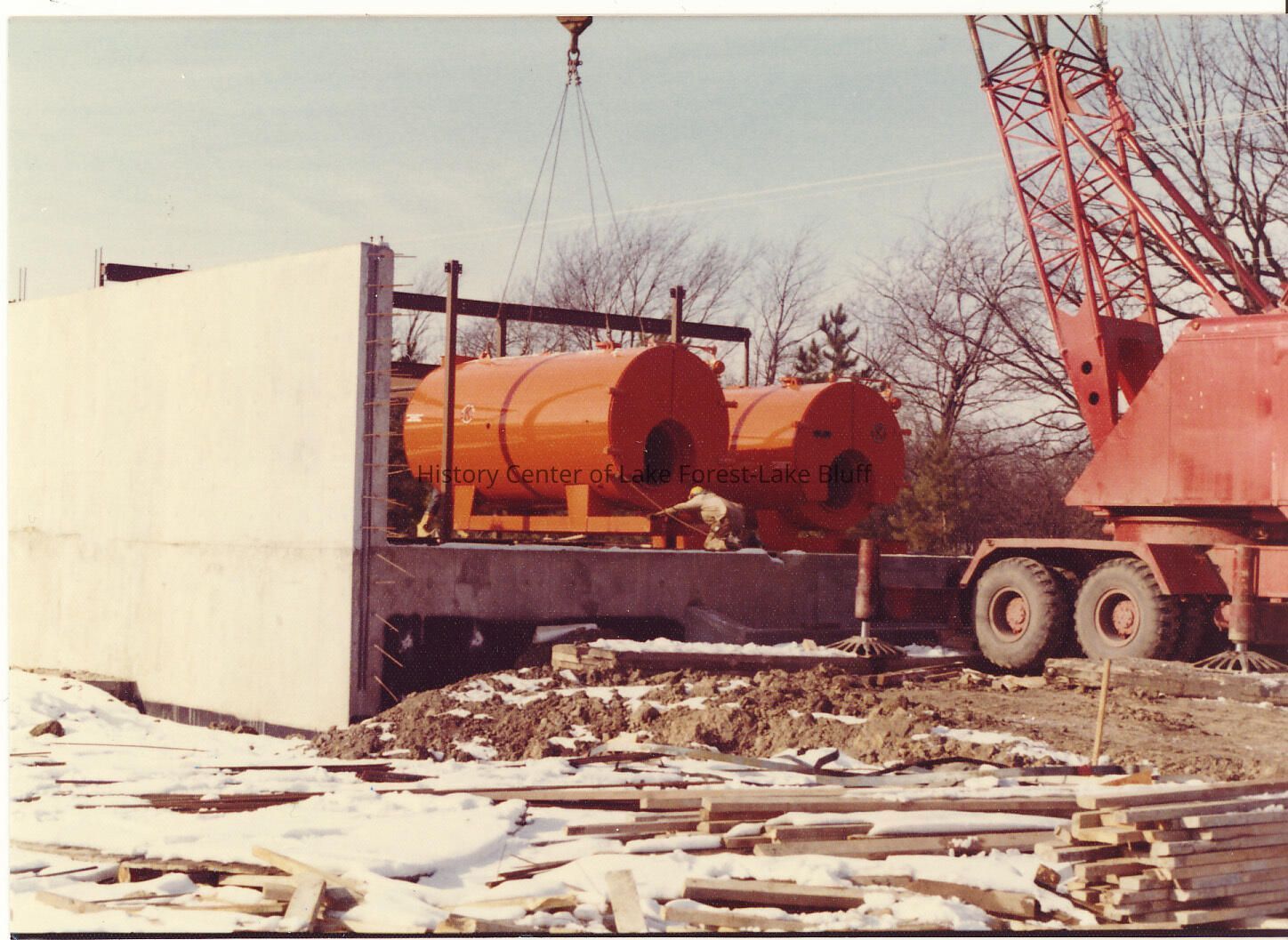 Construction site December 1974. Looks like installation of boilers or tanks.