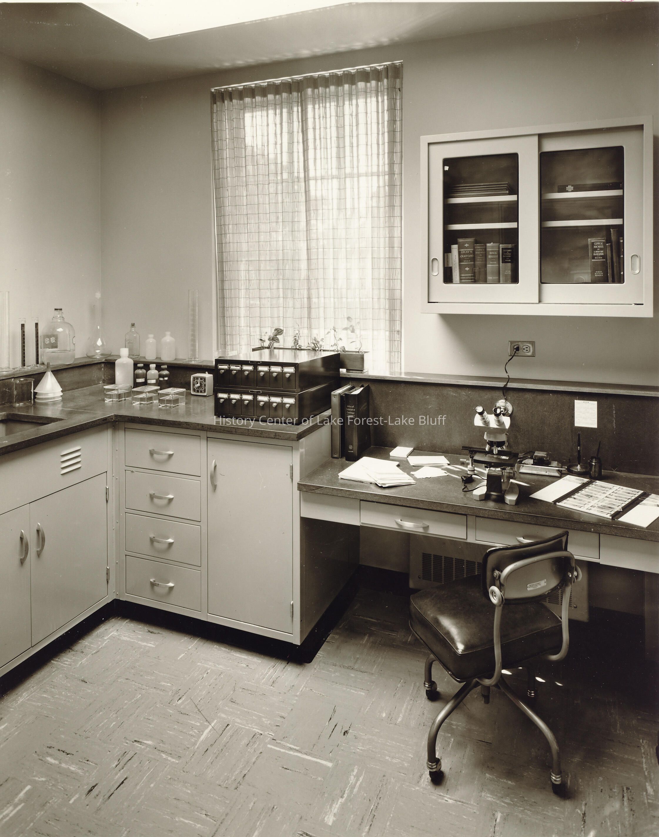 Corner of a laboratory with a microscope.