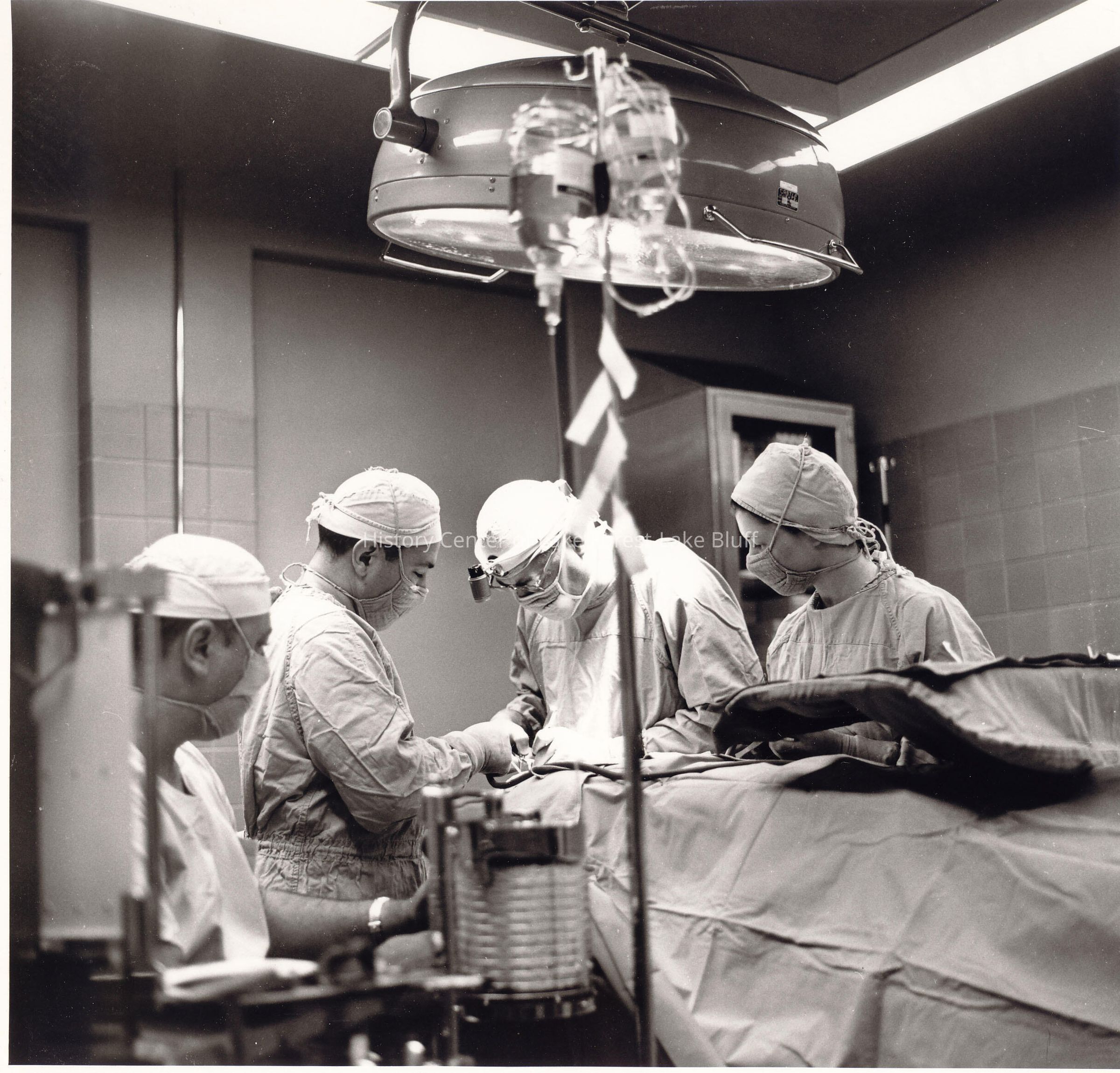 Operating Room: Two male surgeons one male anesthesiologist and one female OR nurse.