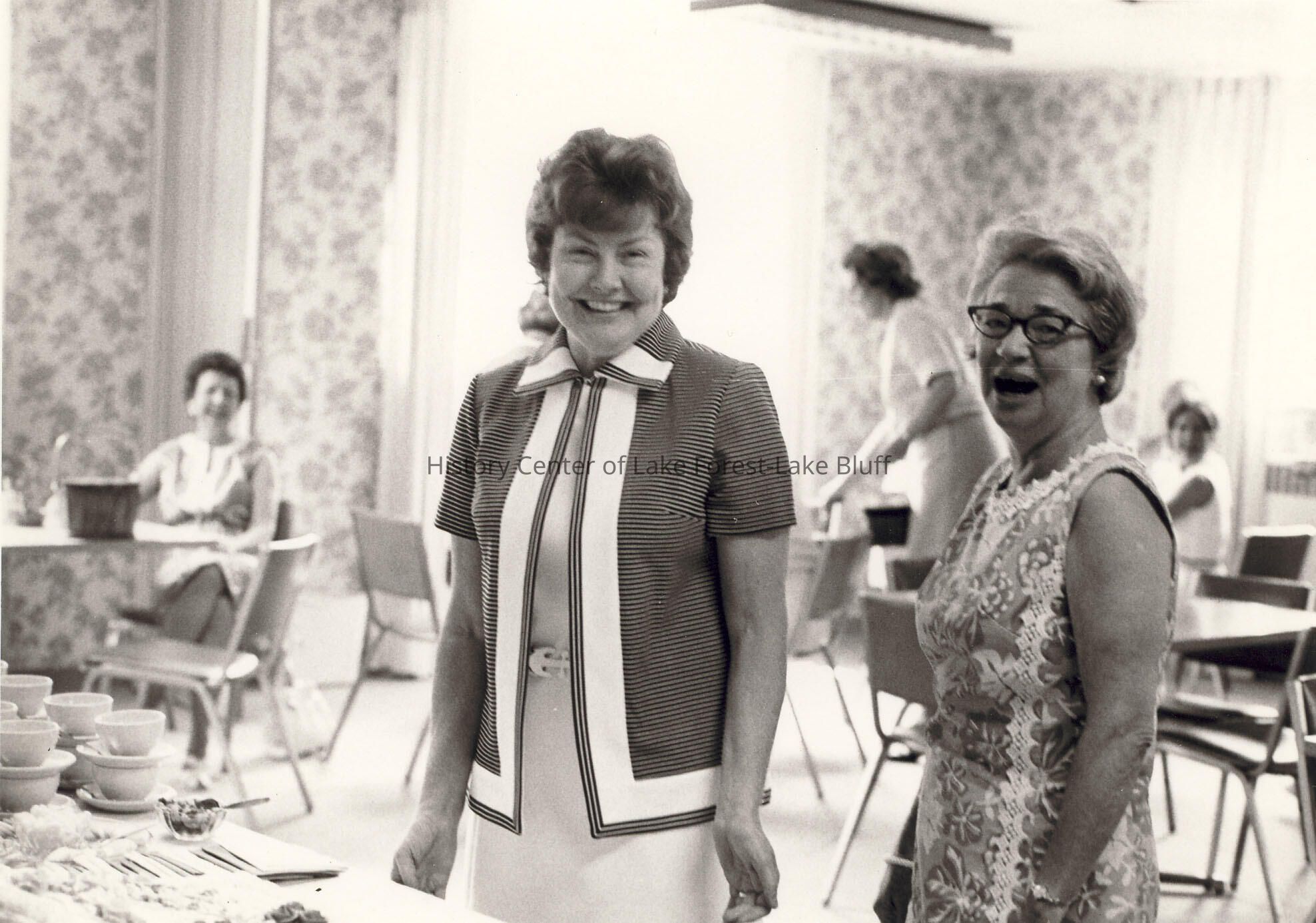 Women's Auxilliary. Two women standing in front of coffee set.