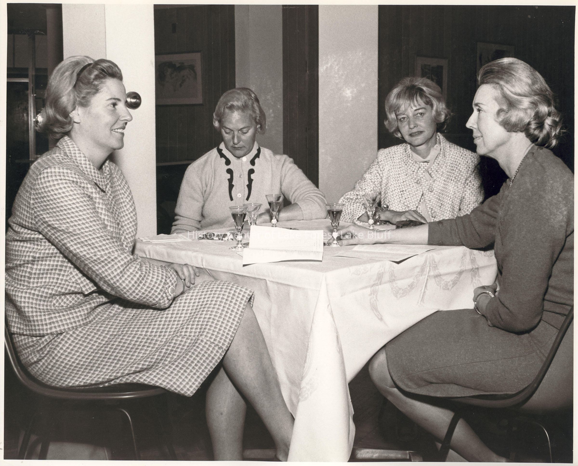 Women's Auxiliary: Four women around a coffee table. Sue Dick and Millie Hailand on left