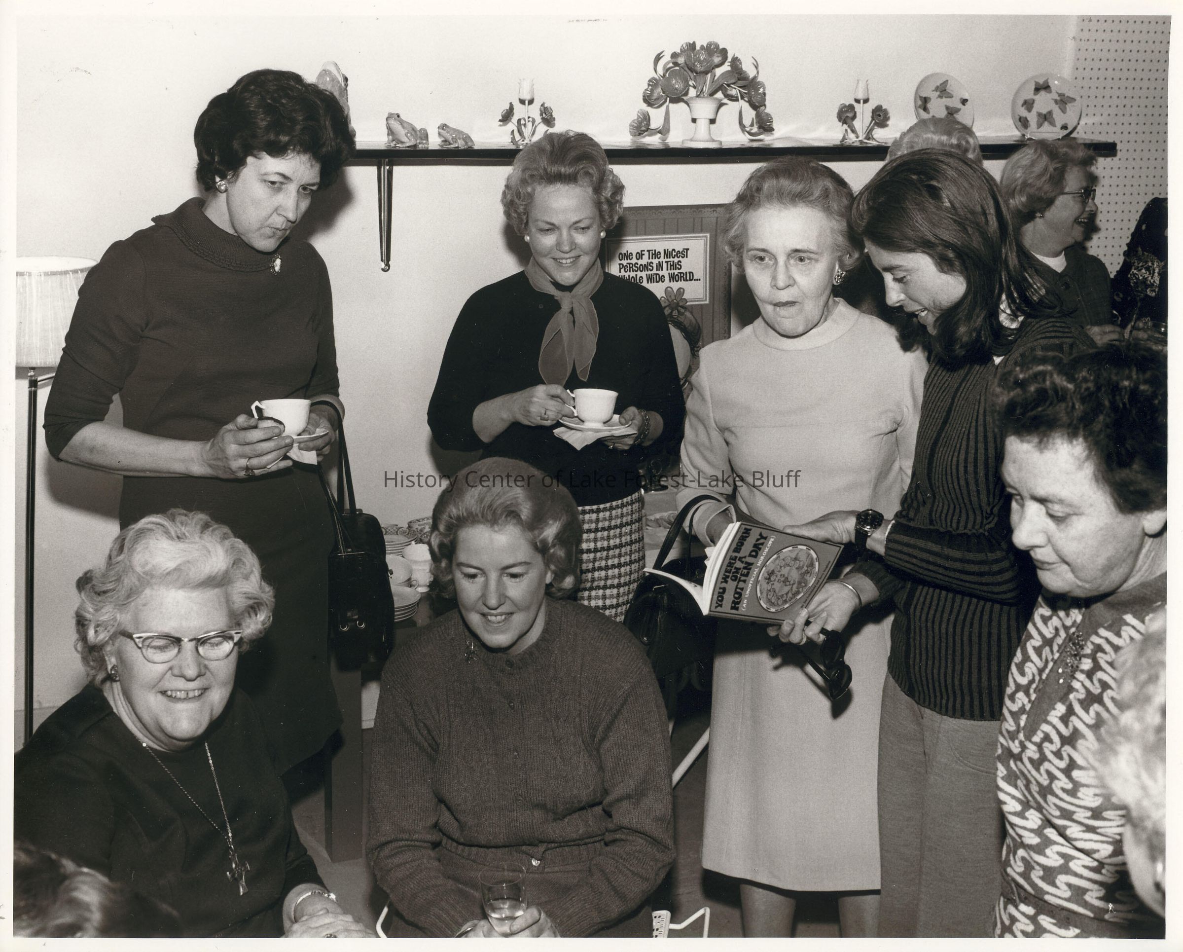 Women's Auxiliary: Several women attending Vicki Julian's 25th anniversary party. Helen Graham and Sue Dick, seated. Standing ?, Lois Cedarquist, Mrs. Reichert and Jean Greene.