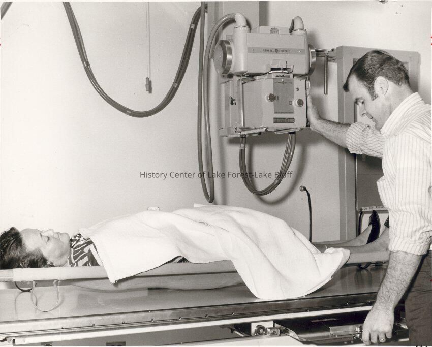 X-ray technician with Mrs. Daly on x-ray table.