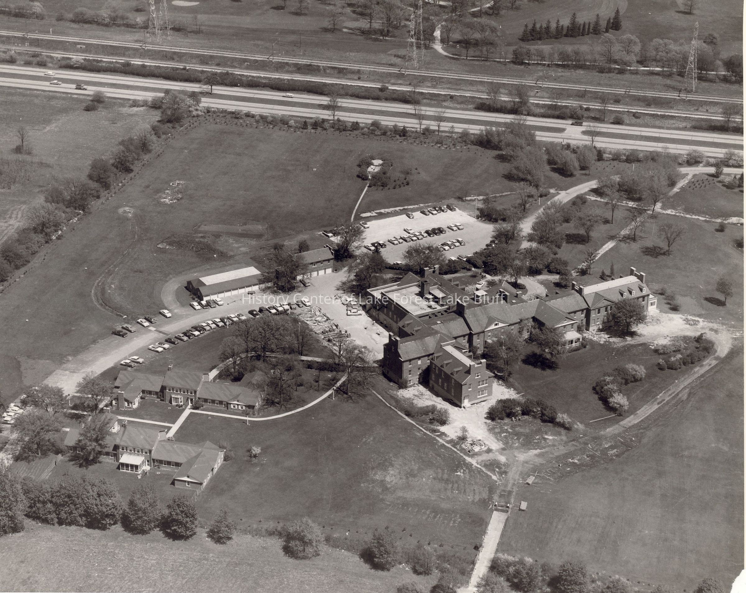 Arial View of hospital circa 1955 showing route 41 and original drive into the hospital in upper righthand corner.