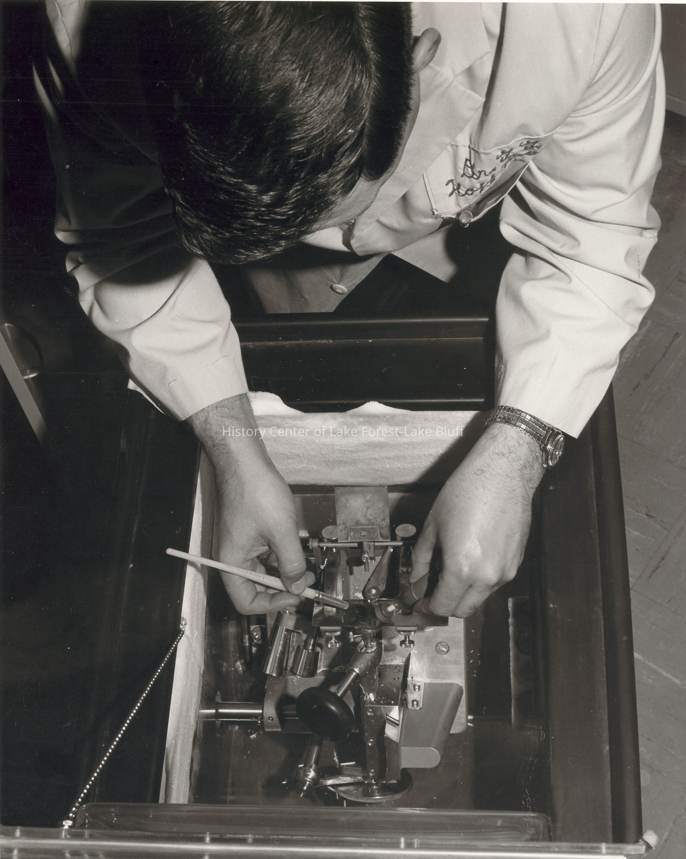 Dr. Hoffman working with a small machine.