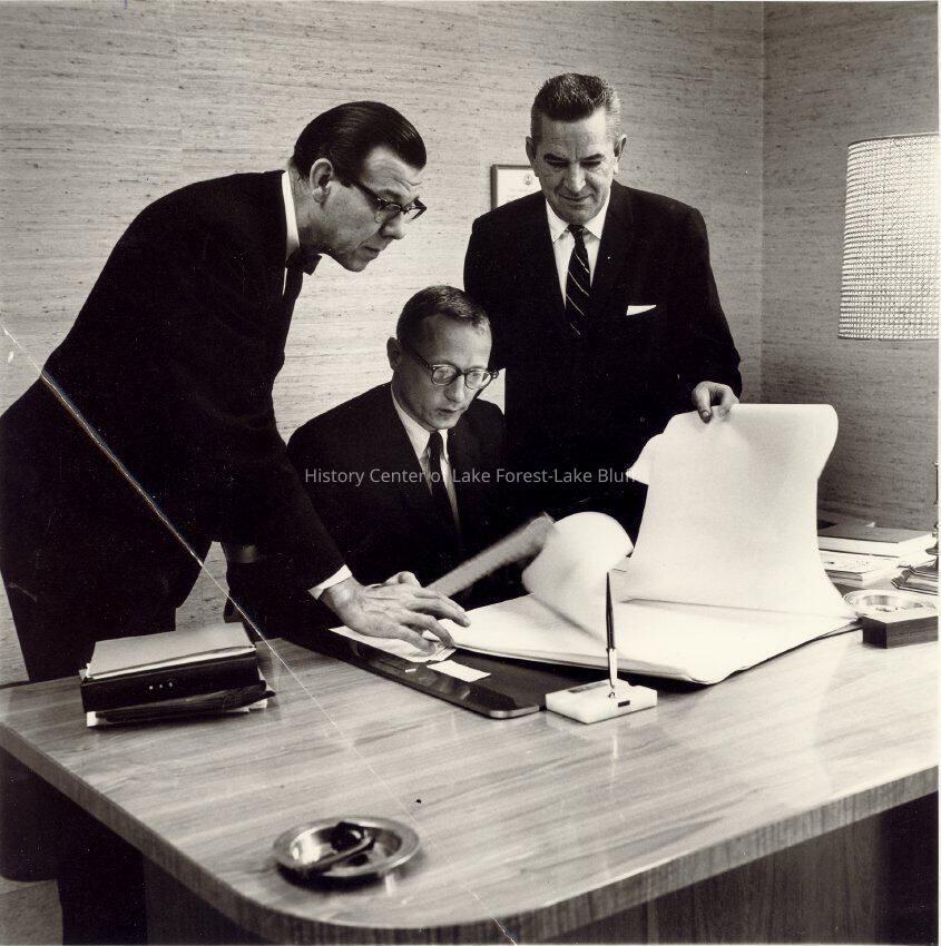 Bill Bergman, George Caldwell and Dr. William Looby (sp?) reviewing a document. Same photo as prior one.