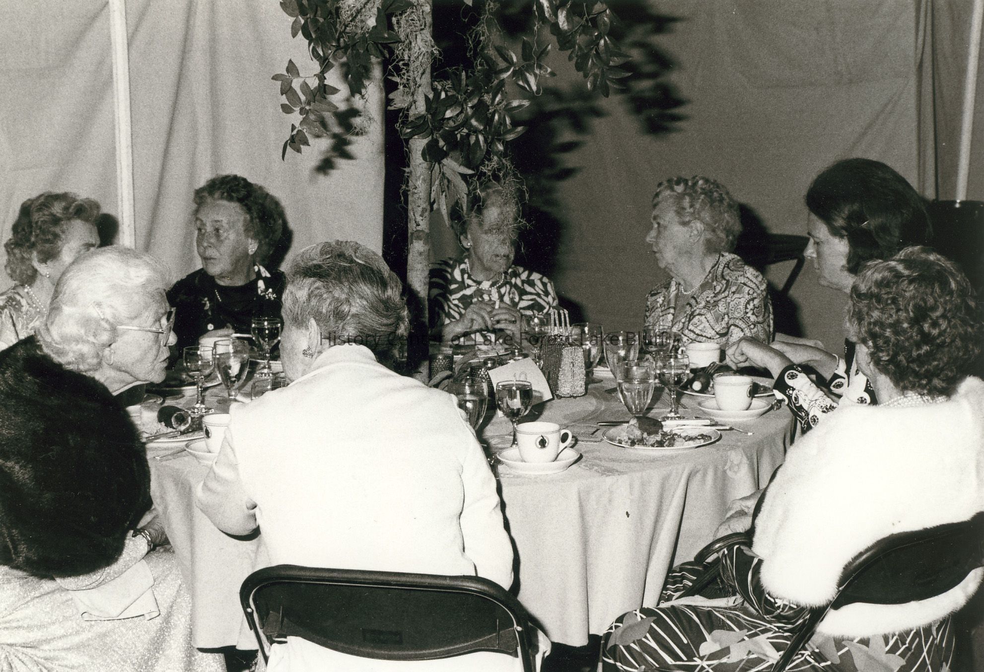 Helen Dick and Grace Chandler on far side of the table at Onwentsia Club