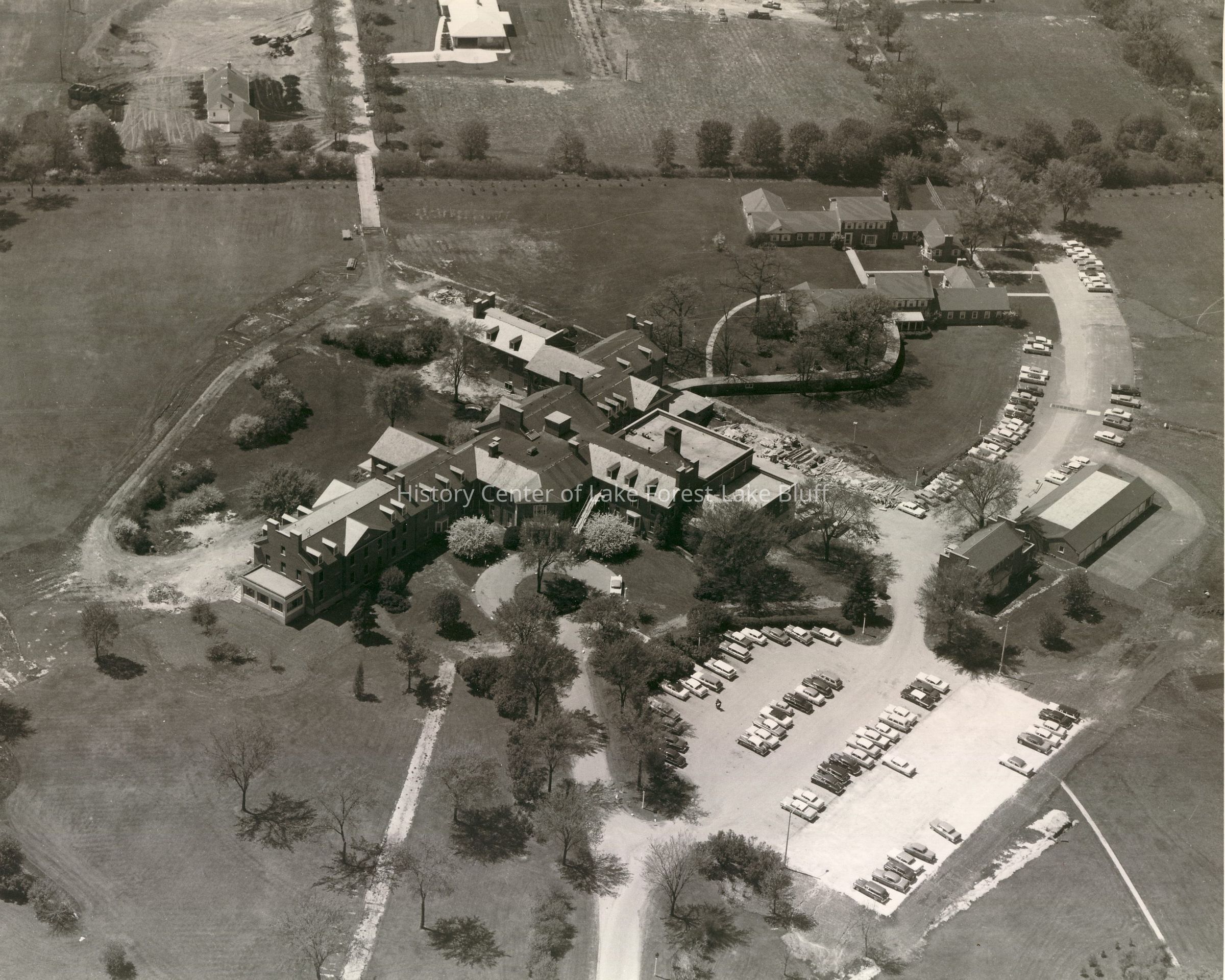Photographs relating to Lake Forest Hospital collected for the 100th Anniversary of the Hospital by the Development Department. Aerial view of the hospital.