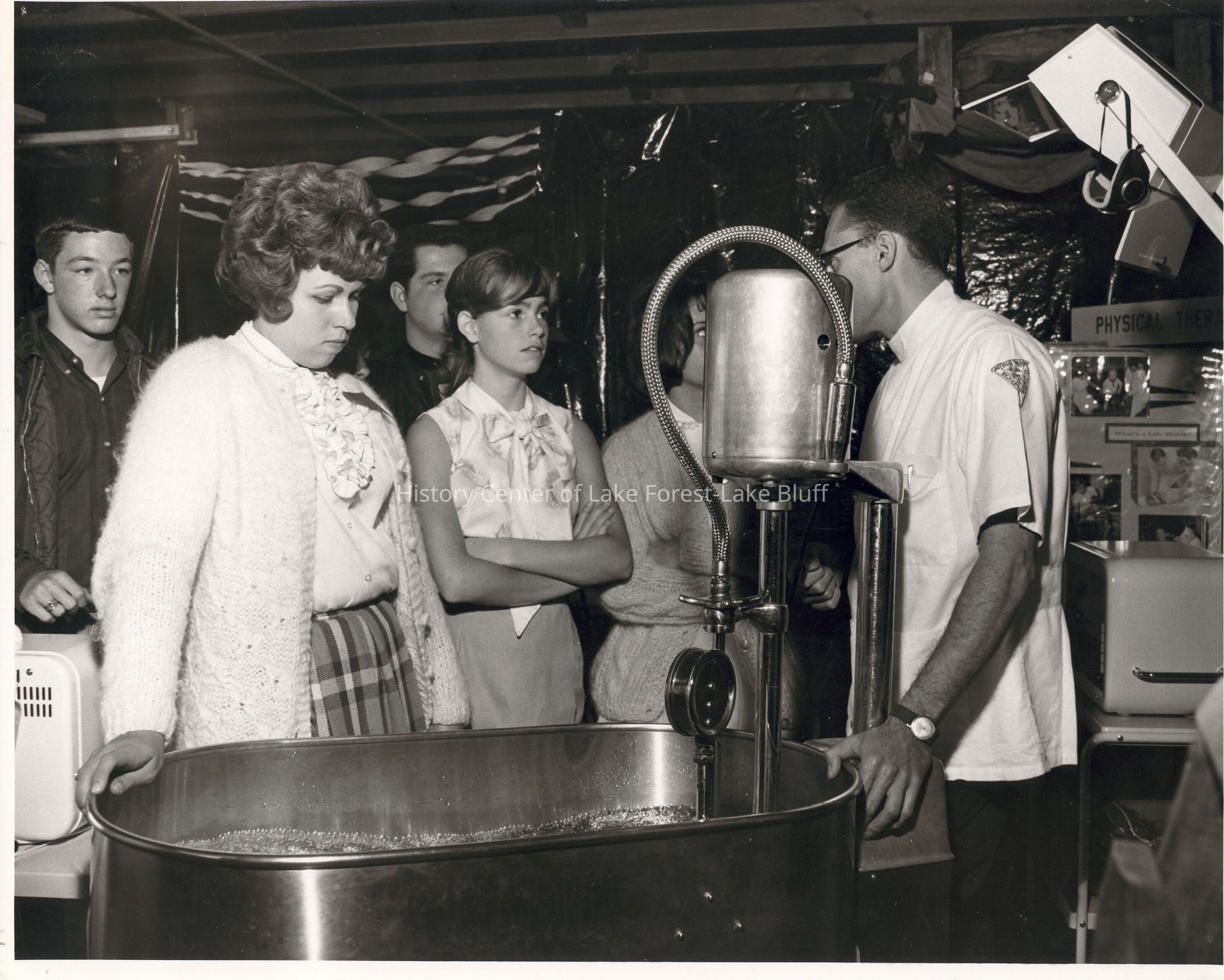 Job Fair: Carson Klinetob, Chief of Physical Therapy, demonstrating whirlpool to student visitors.