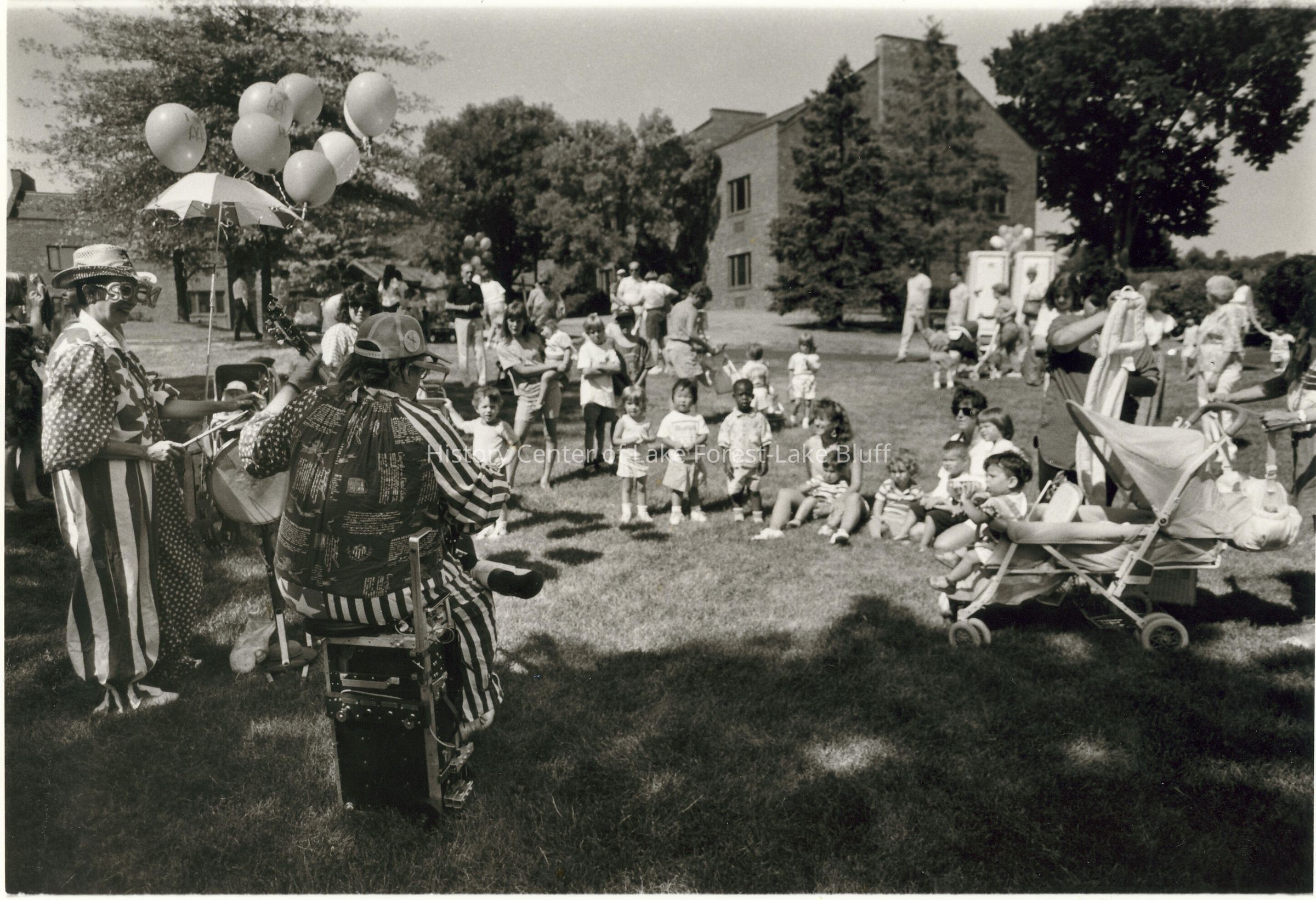 Clowns entertaining children at Baby Alumni Party.