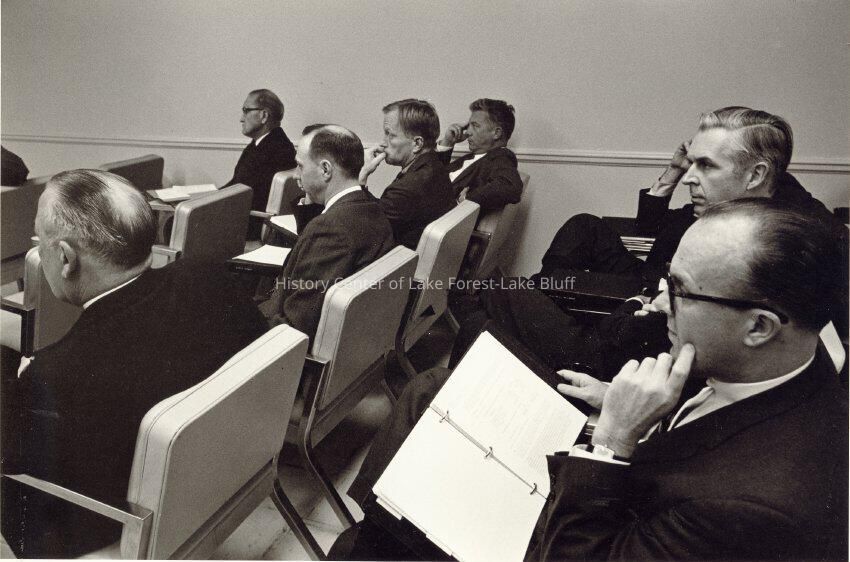 Presumably members of Lake Forest Hospital board listening to a presentation.
