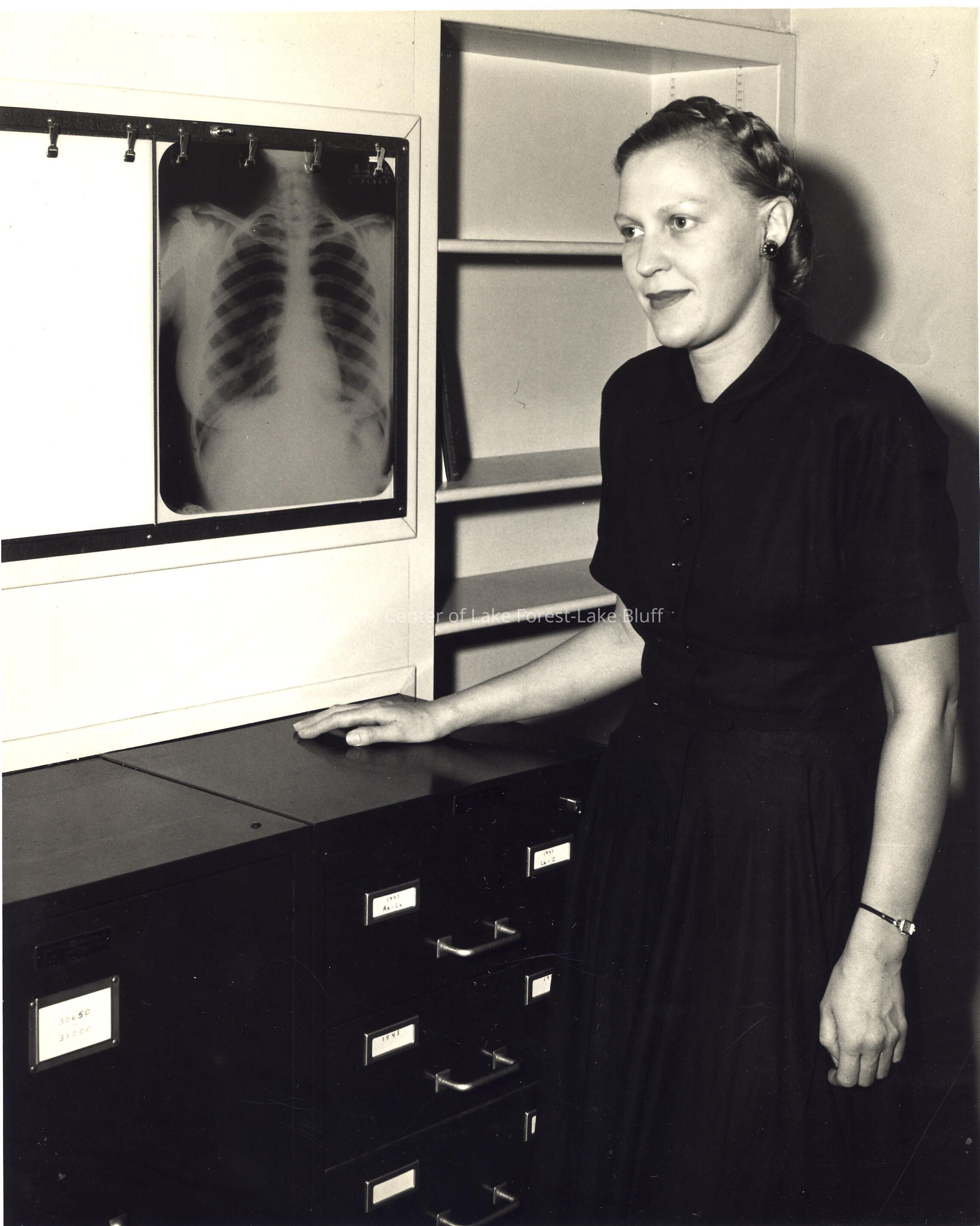 Dr. Audrey Wilson radiologist standing in front of x-ray.