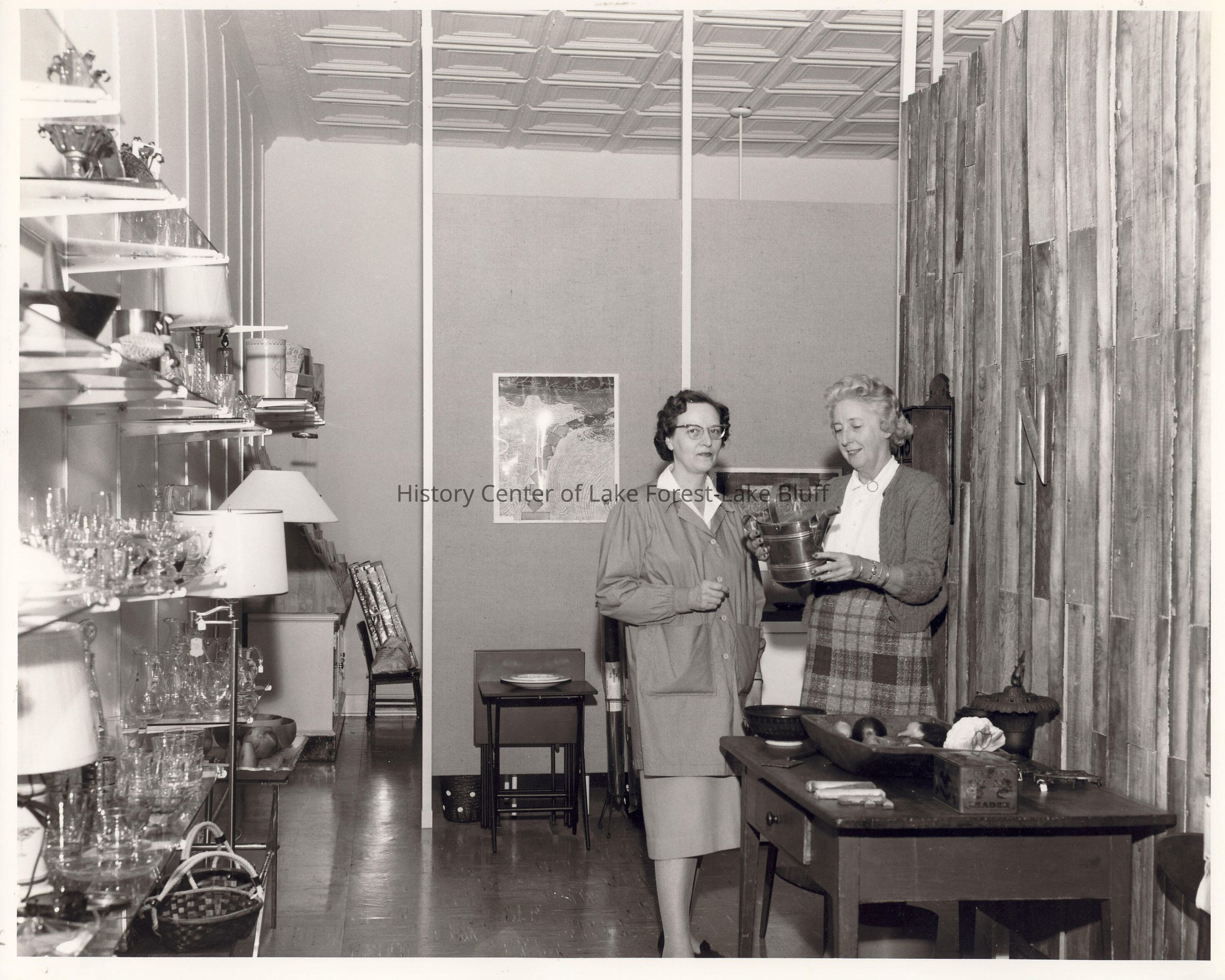 Women's Auxiliary: Two women in hospital gift shop.