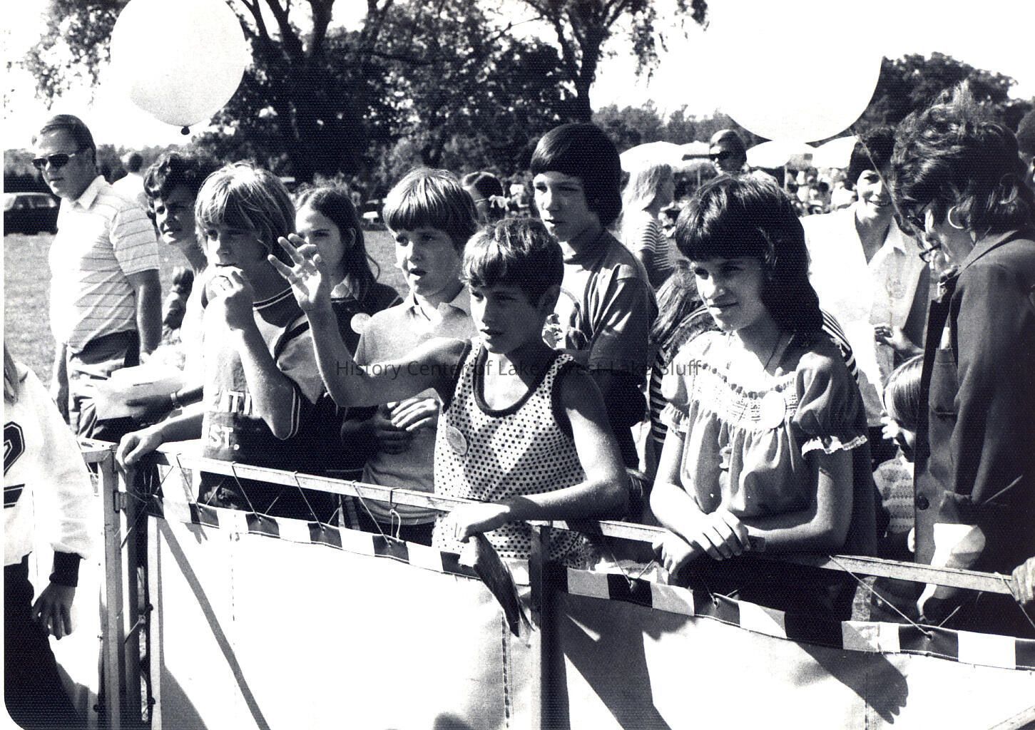 Children behind barrier at Baby Alumnae party.