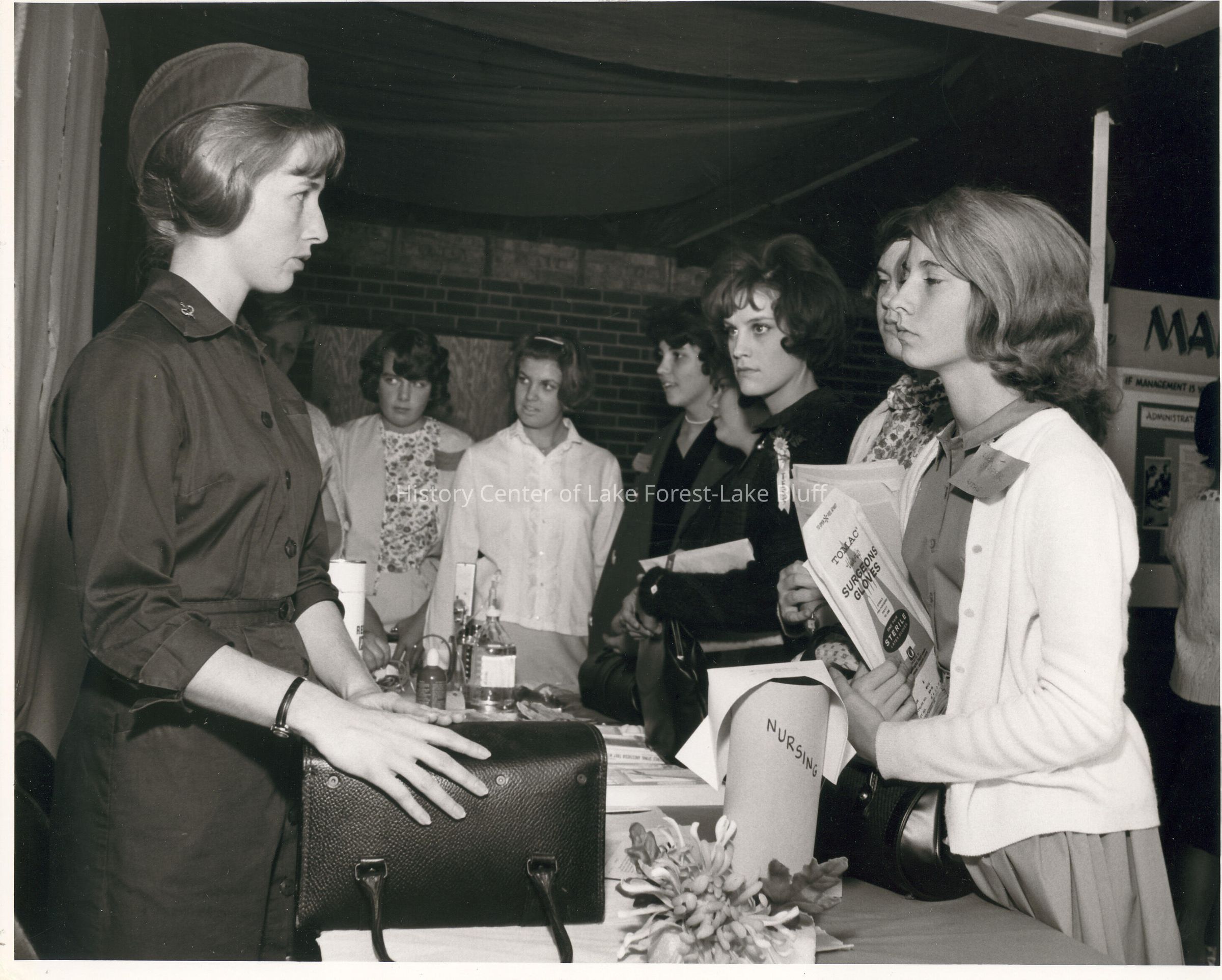 Job Fair: Nurse talking to three young ladies.