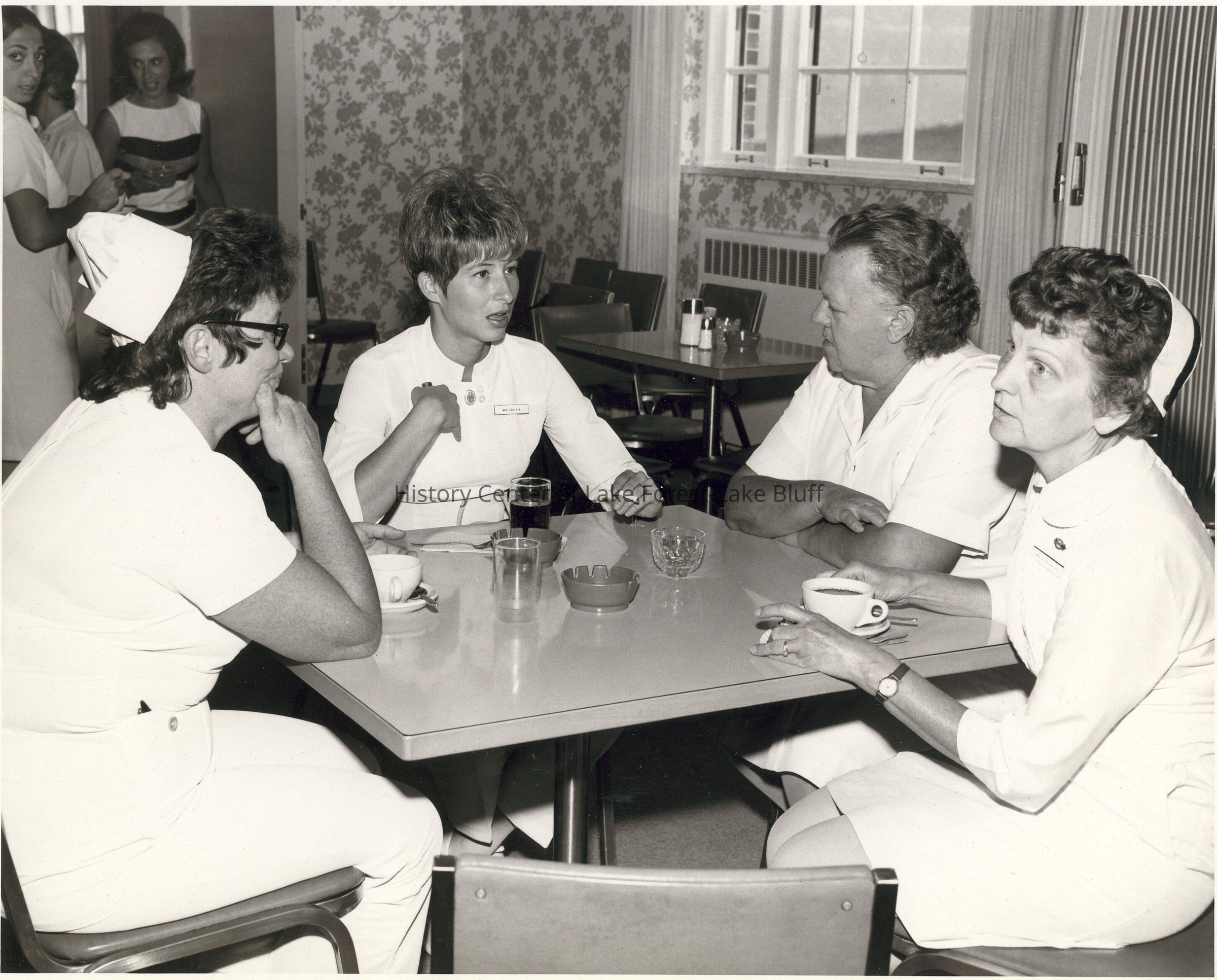 Four nurses in cafeteria.