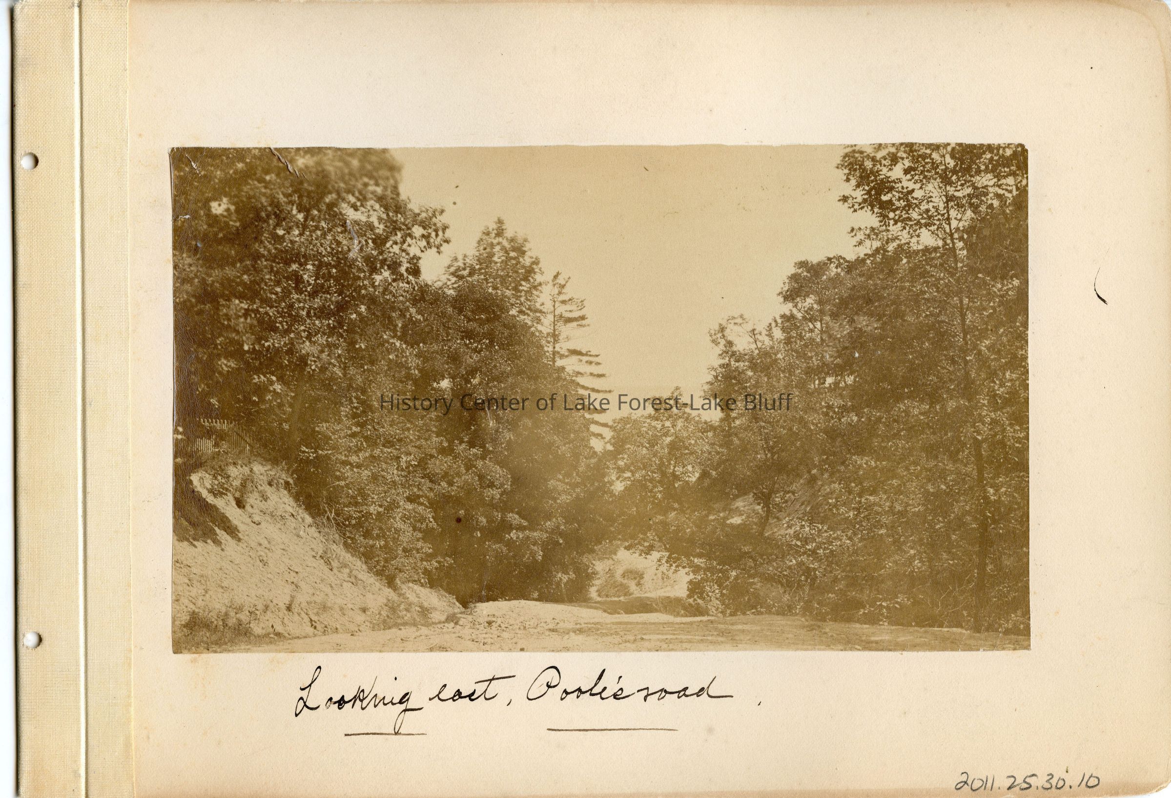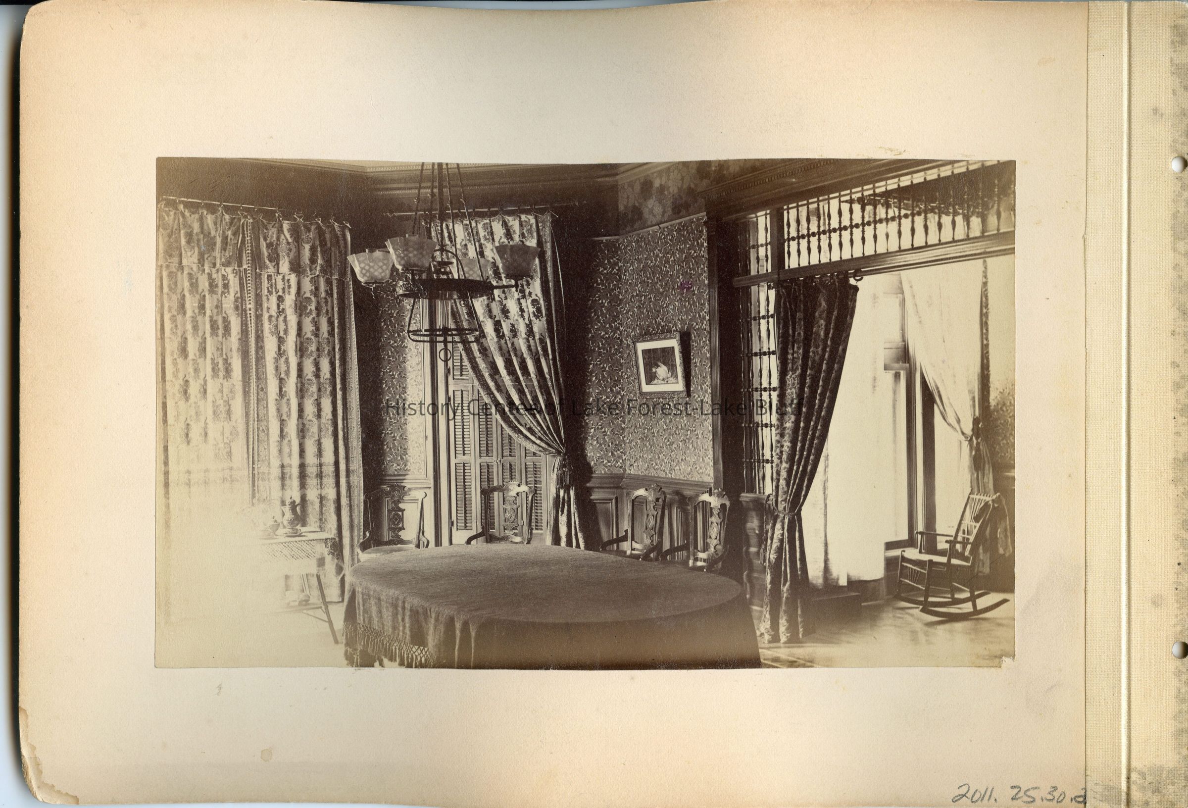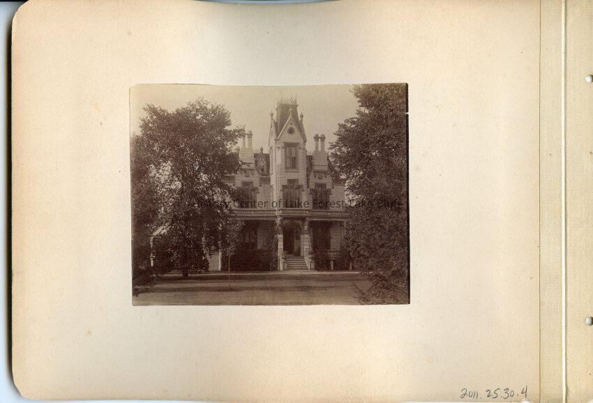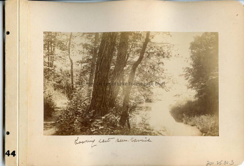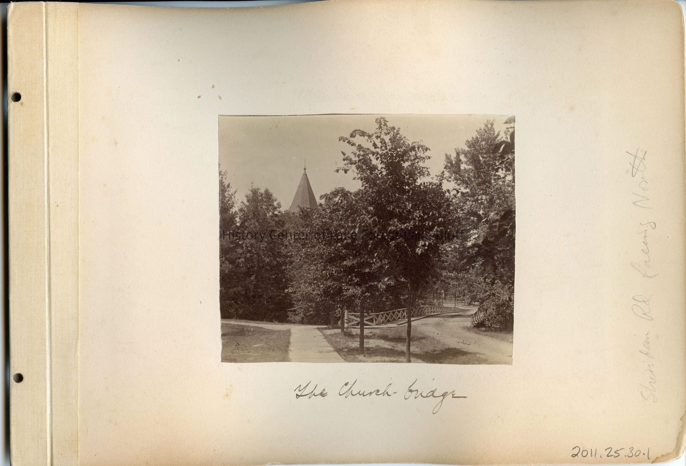 Six double-sided pages from a photograph album. 1.) The Church bridge, Sheridan Road facing north. Possibly First Presbyterian Church turret visible in rear. 2.) Dining room of unidentified house. 3.) Looking east ??? ravine. Same as 2011.25.28. 4.) John V. Farwell House, 888 East Deerpath. 5.) Two men, Looking east, Poole's Ravine. 6.) Any sunny? nook. Fallen tree in ravine. Same as 2011.25.11. 7.) An Old Time Friend. Deer statute. Same as 2011.25.6. 8.) Close-up of large urn in front of Farwell House. 9.) By Mrs. Rhea's. Road and bridge. 10.) Walking bridge. Same as 2011.25.5. 10.) Likely bridge over Farwell Pond, Fairlawn. Similar to 2011.25.4. 11.) Rear of house. Tennis court. 12.) Mr. Dwight's. Walking bridge. May be John H. Dwight on Lake Avenue. 13.) Looking east, Poole's Road. Same as 2011.25.26.Lexicon