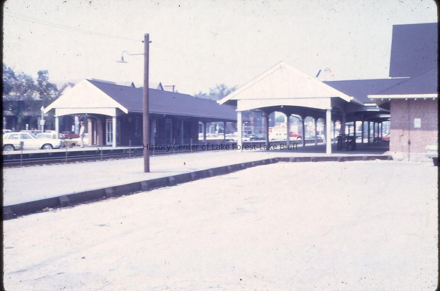 Scenes of Lake Forest C &NW Railroad Lake Forest Station c 1984 if there is a railroad baggage cart under the main station and none under the warming shelter.