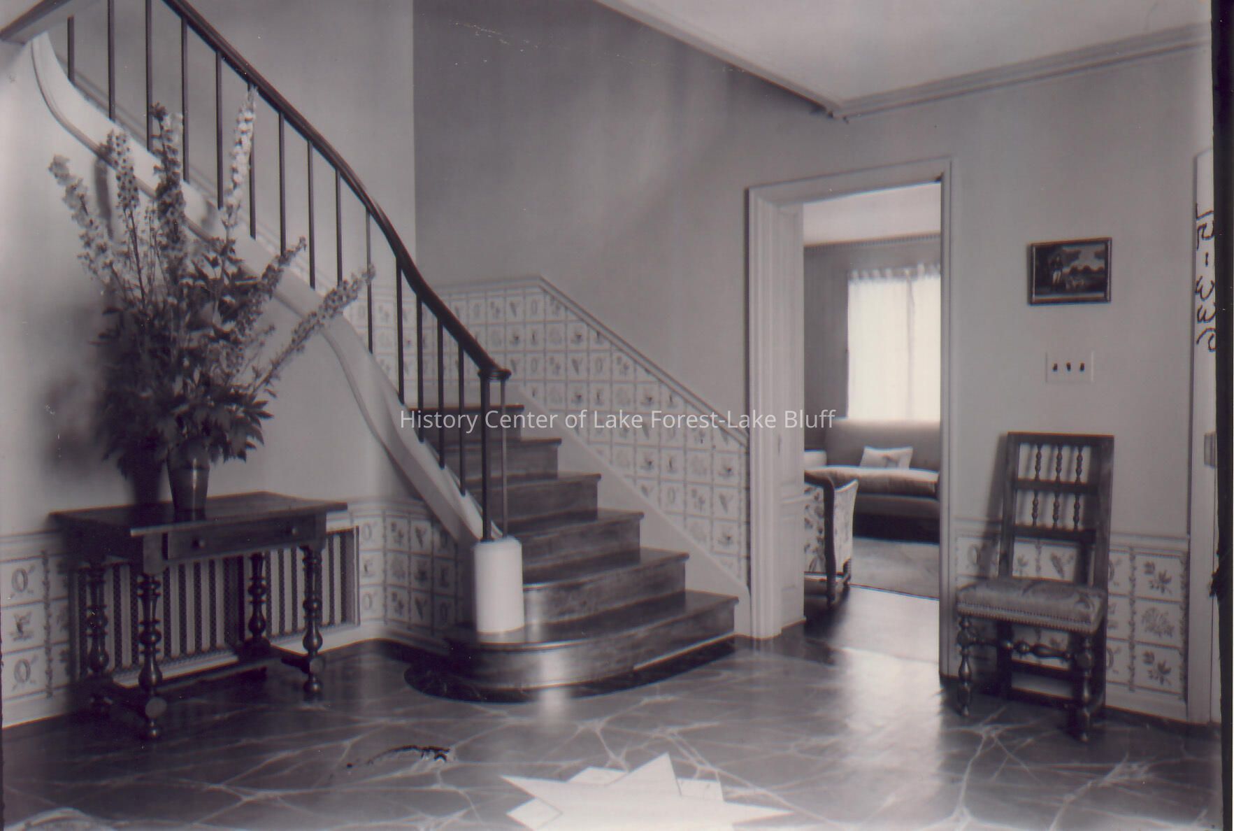 Interior of Walter Frazier home built for Lawrence Williams Jr. in 1928. Located at 1050 E. Illinois Road in Lake Forest, Illinois. (Black and White Image)