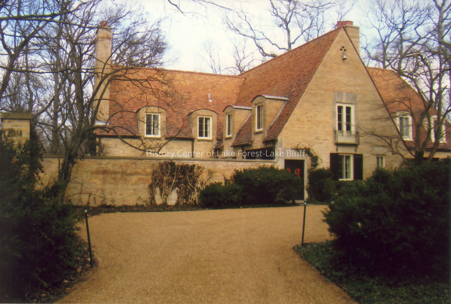 Exterior view from drive way of Walter Frazier home built for Lawrence Williams Jr. in 1928. Located at 1050 E. Illinois in Lake Forest, Illinois.