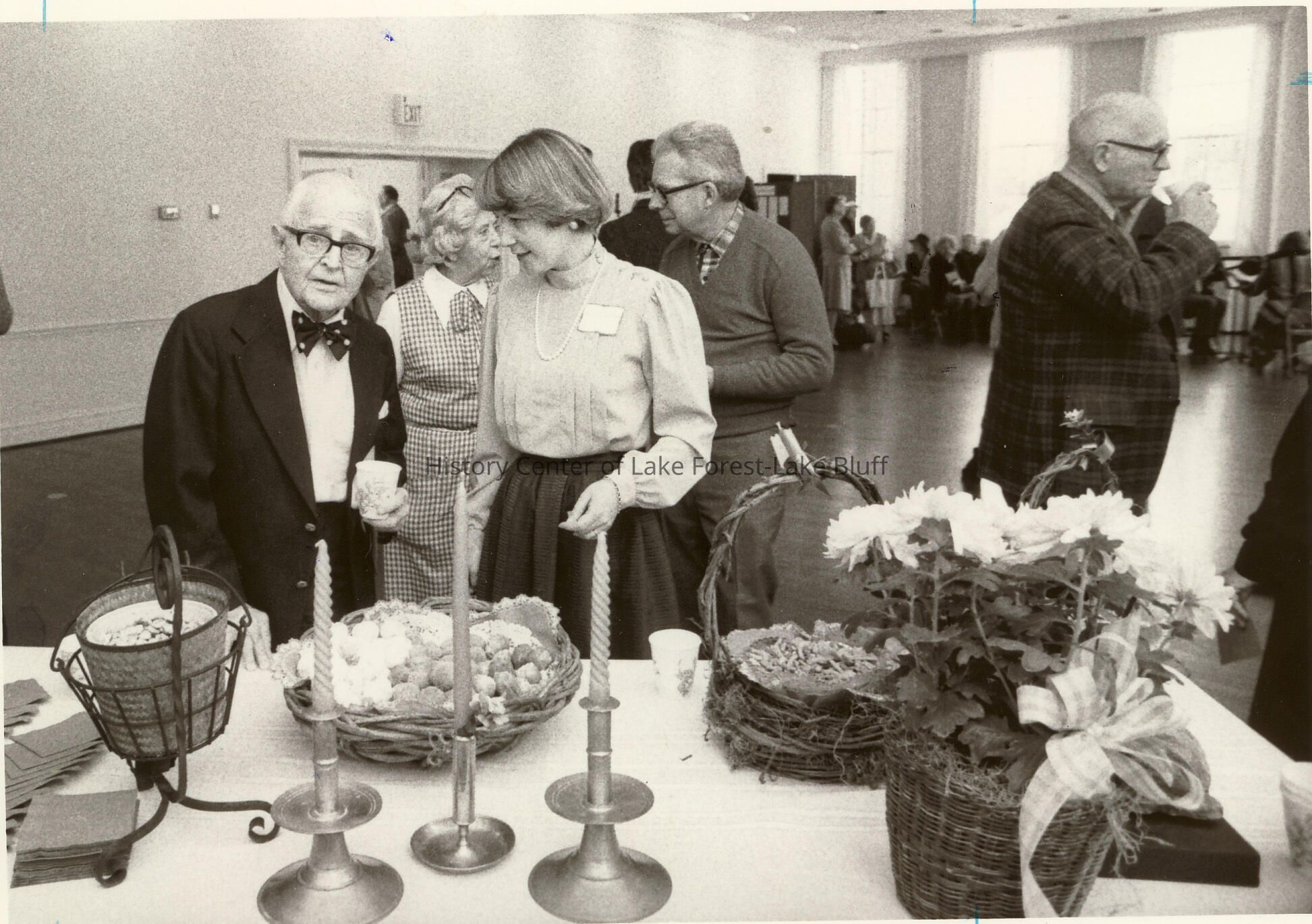 Mrs. Daniel Shepherd, Gorton Board member, chats with Mr. Louis Seaverns, 98 year old resident of Lake Forest. The Shepherds recently purchased his former home. Mr. Seaverns is the oldest contributer to the Community room.