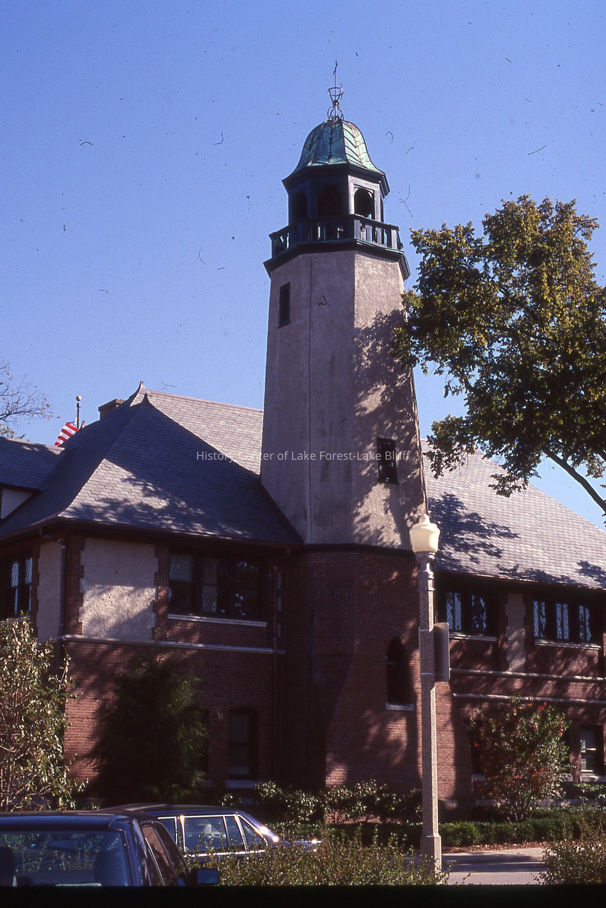 A photograph of the tower at Lake Forest City Hall (220 E Deerpath).