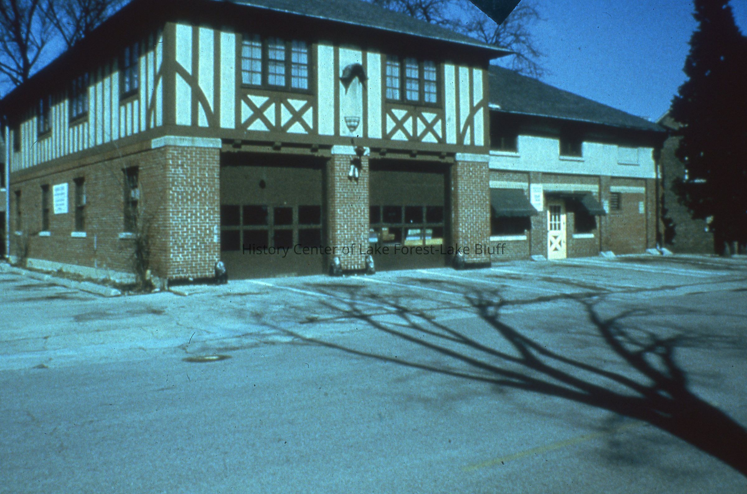 A photograph of the Lake Forest Fire House at 665. Forest. The south gate.