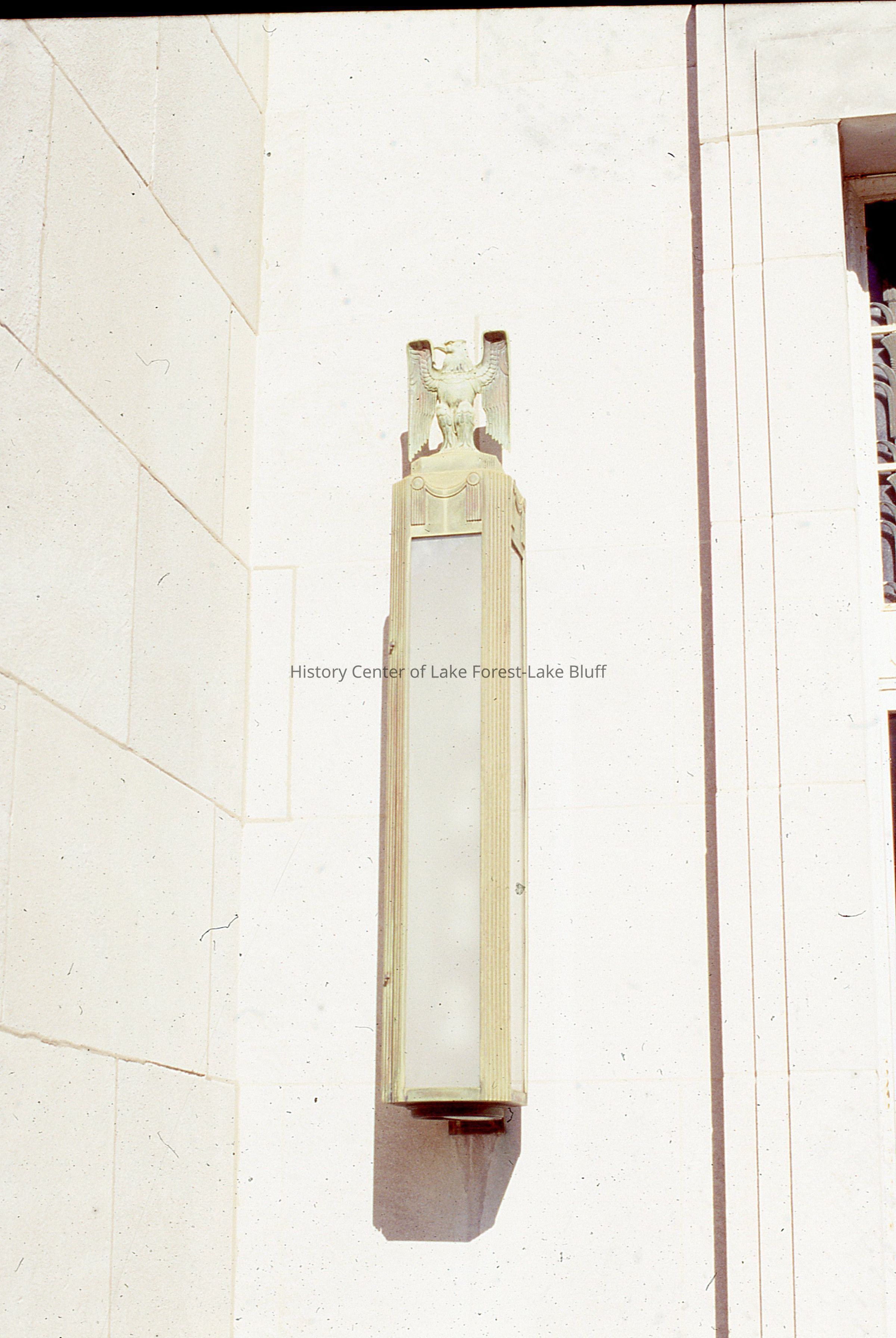 A photograph of a sculpture of an eagle on the outside of the Lake Forest Post Office (230 Northgate).
