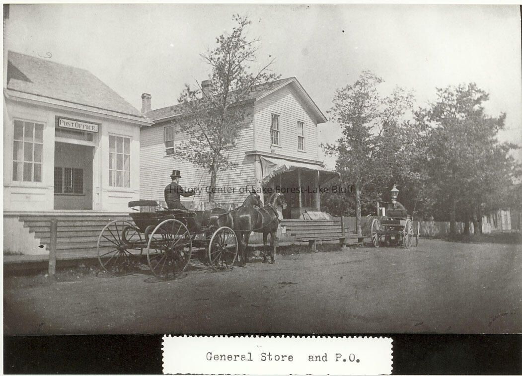 Lake Forest Post Office General Store and Post office c. 1885-1890 - probably Anderson General Store carriages and horses in front
