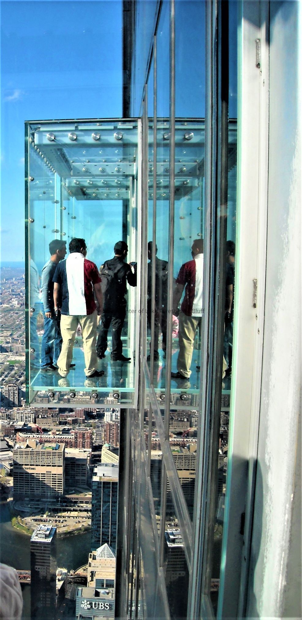 Linda Garrison: "High in the Chicago Sky Go to all heights to view our beautiful city as birds can experience it daily. I left my fears at home and walked in my courageous shoes, one footstep at a time"Photograph Details