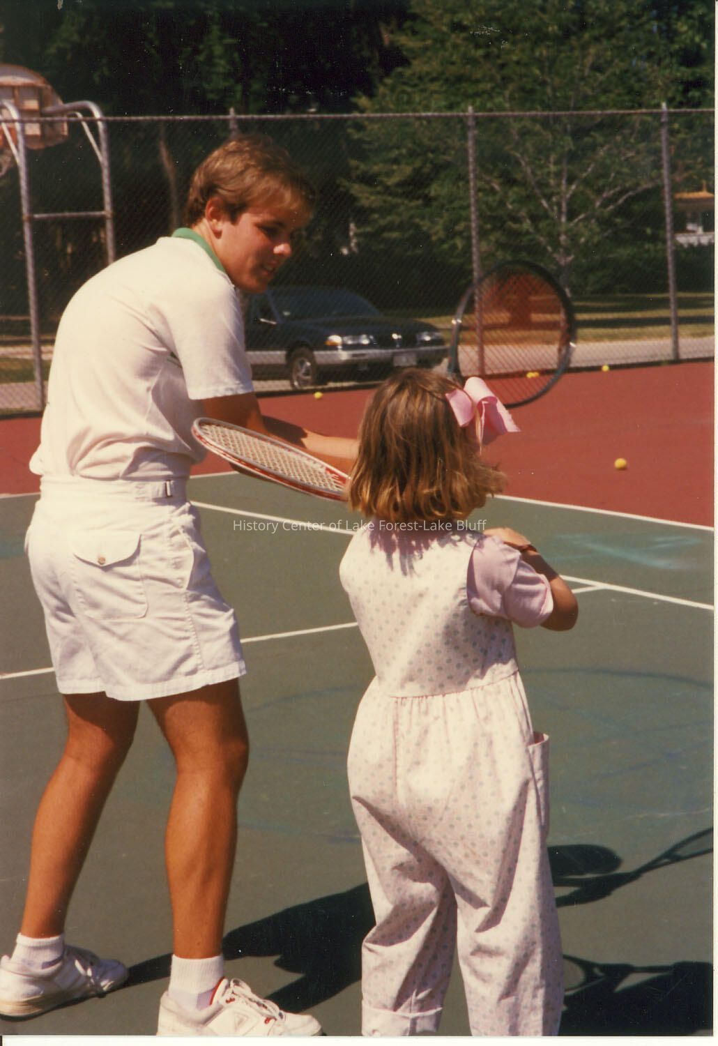 Young girl at tennis lesson probably West Park tennis courts.