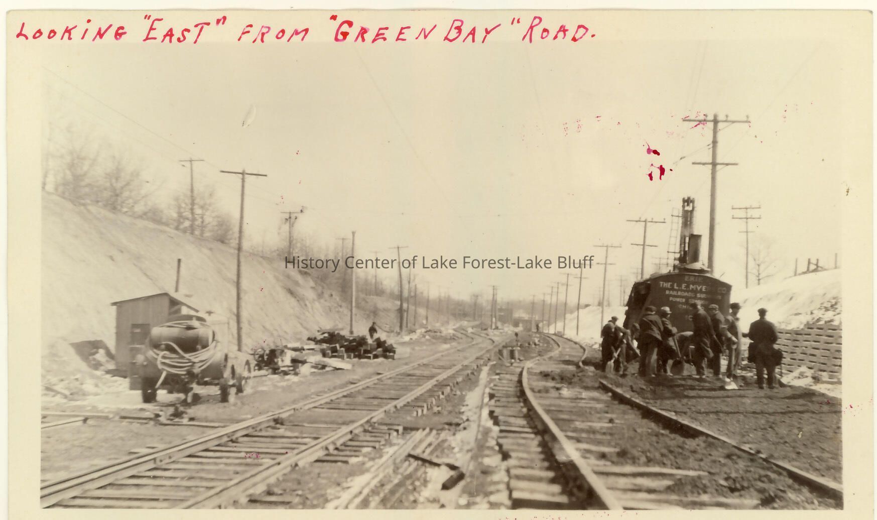 North Shore Line Skokie Valley Route Construction Looking east from "Green Bay" Road. construction west of Lake Bluff The L.E. Meyers Co. 4/21/1926