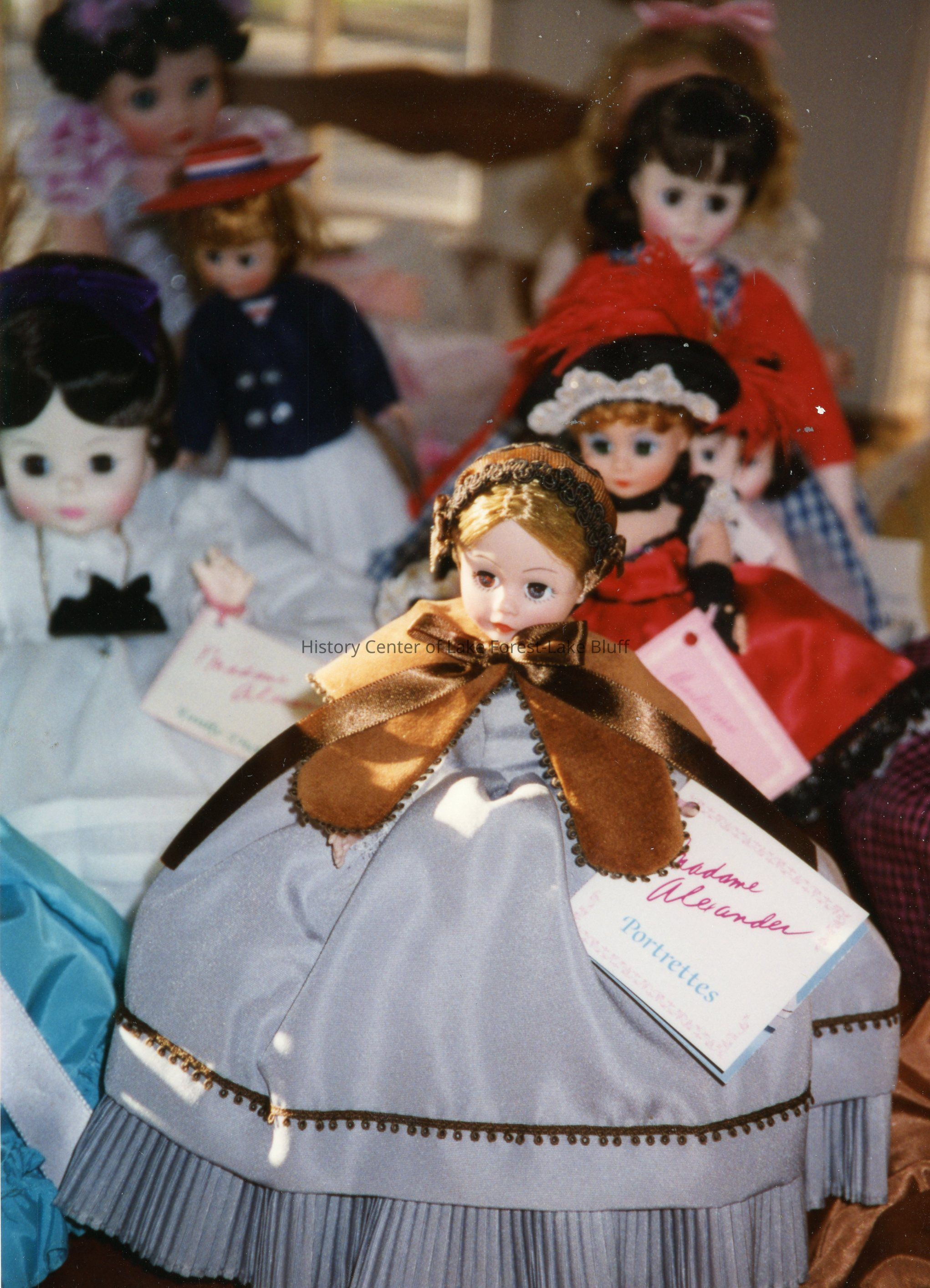 Madame Alexander dolls on display at a meeting of the Market Square Questers. Two copies of photo.Photograph Details