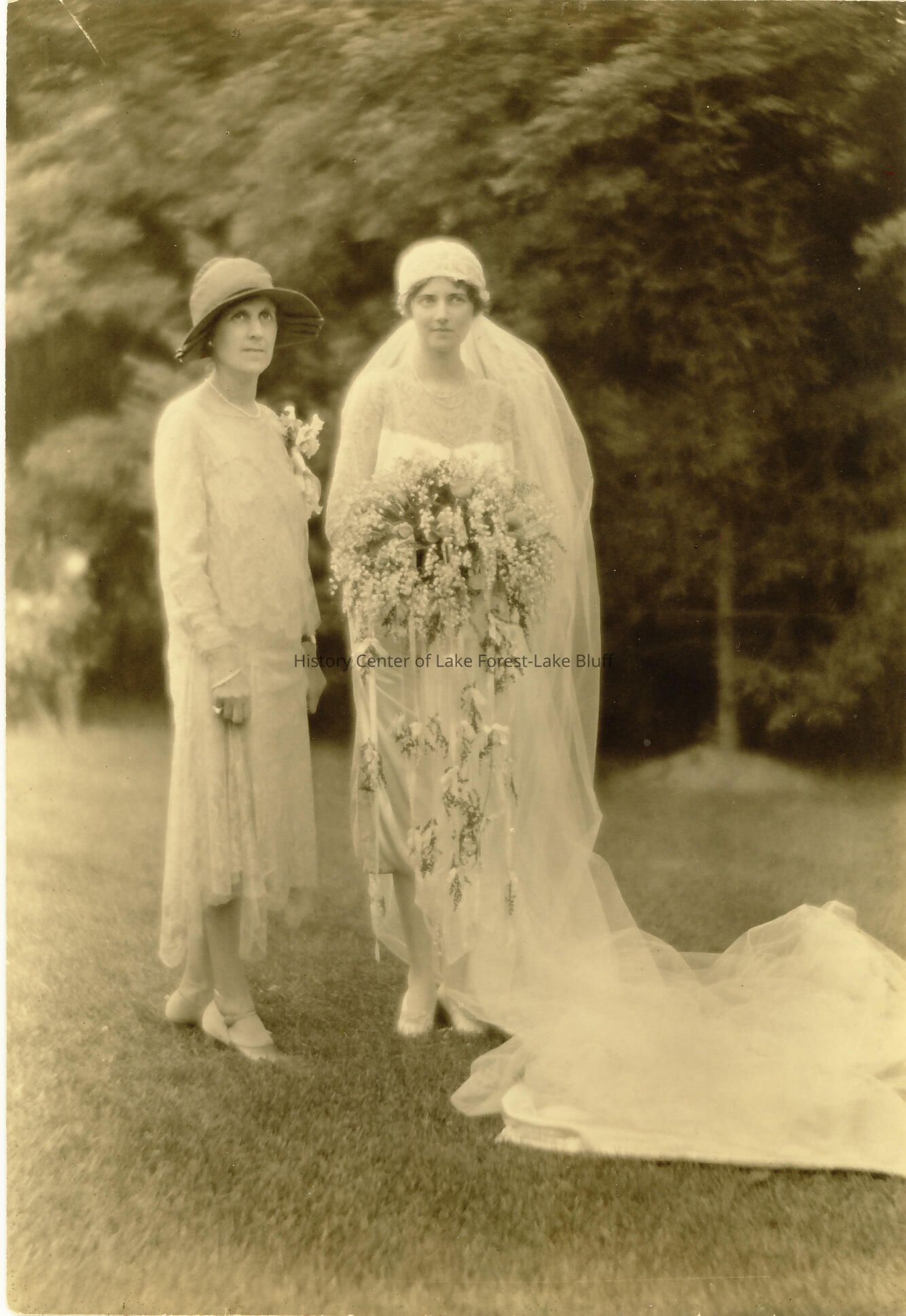 Mrs. Solomon A. Smith and daughter, Mari, wearing a wedding dress