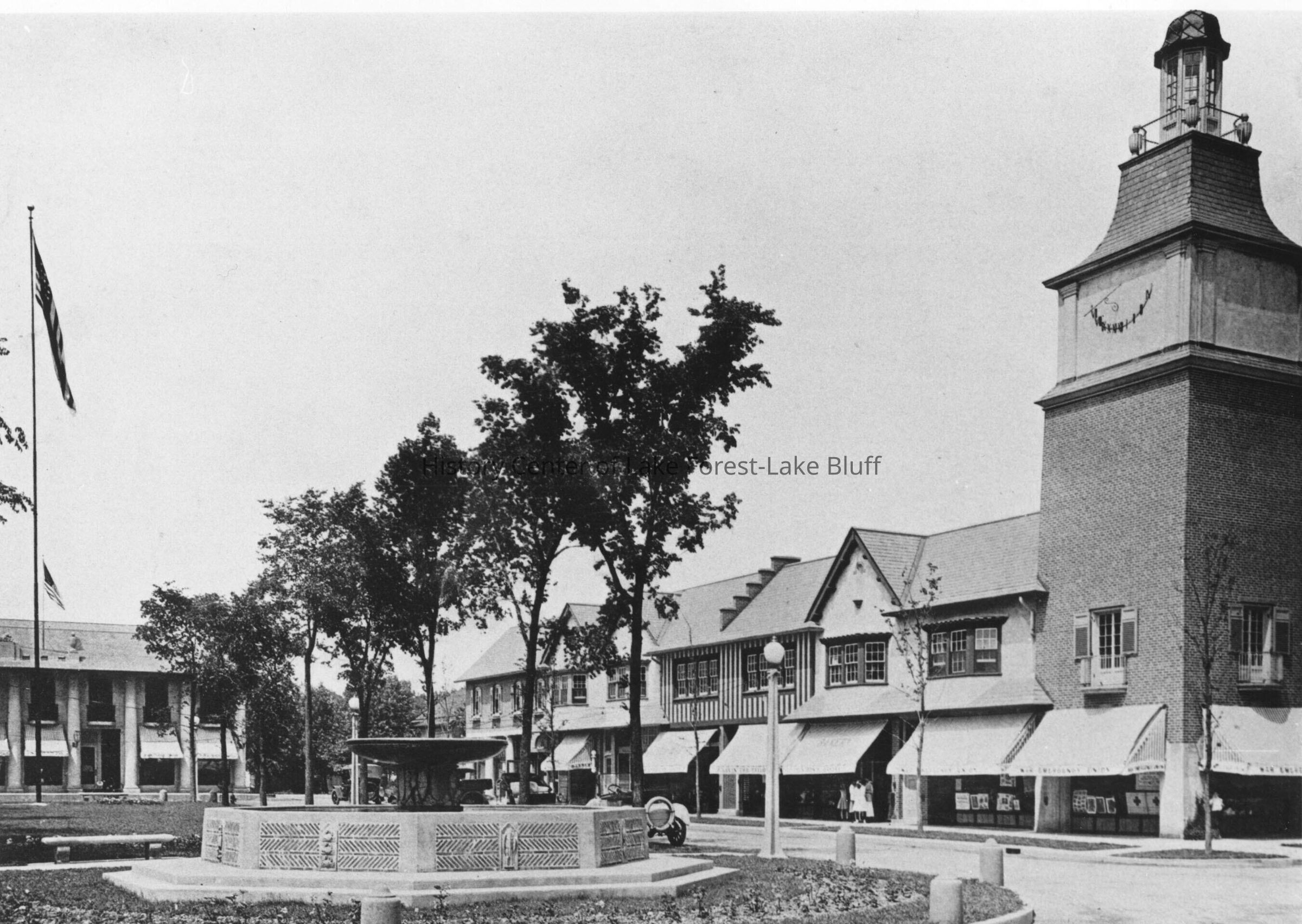 Black and white photograph of Market Square looking north west, 700 N. Western Avenue. From the Western Architect, October 1917. War Emergency Union, later Garnett's, then the Toy Station, then Jolly Good Fellows