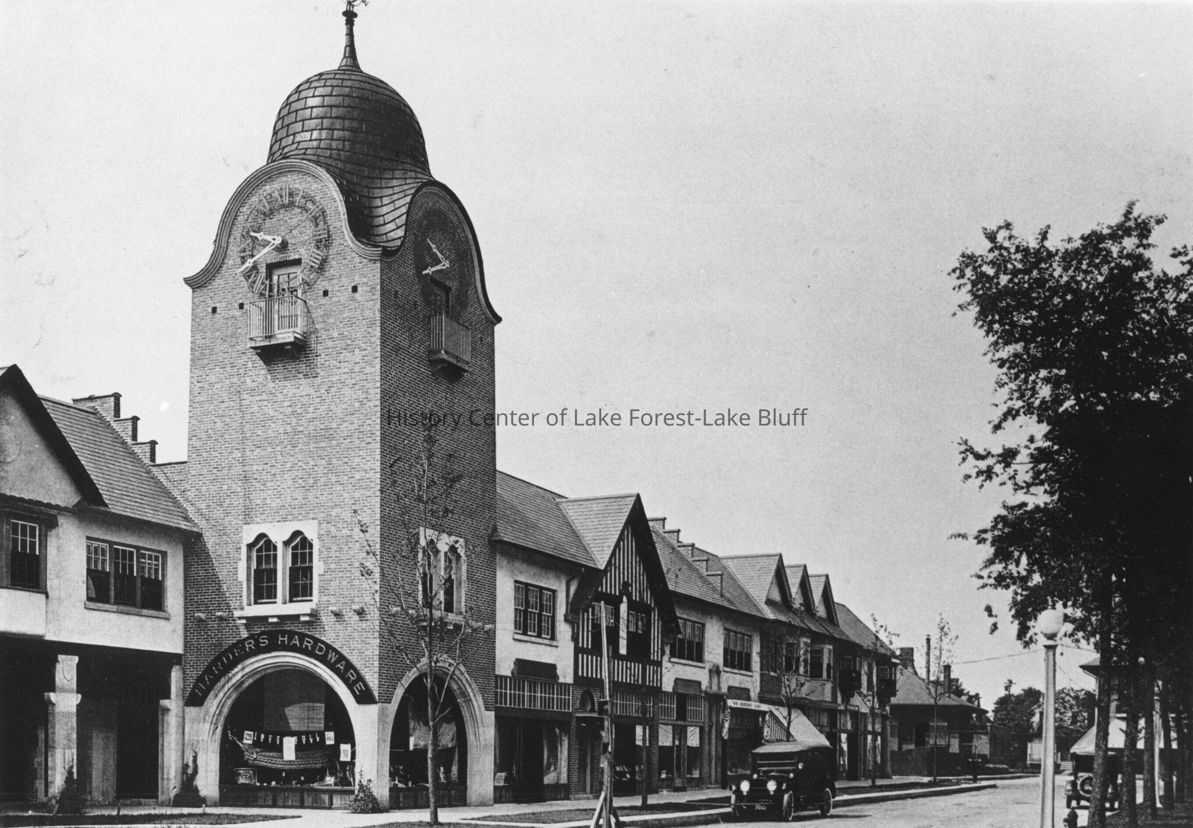 Black and white photograph of Harder's Hardware in Market Square, 700 N. Western Avenue. From the Western Architect, October 1917.