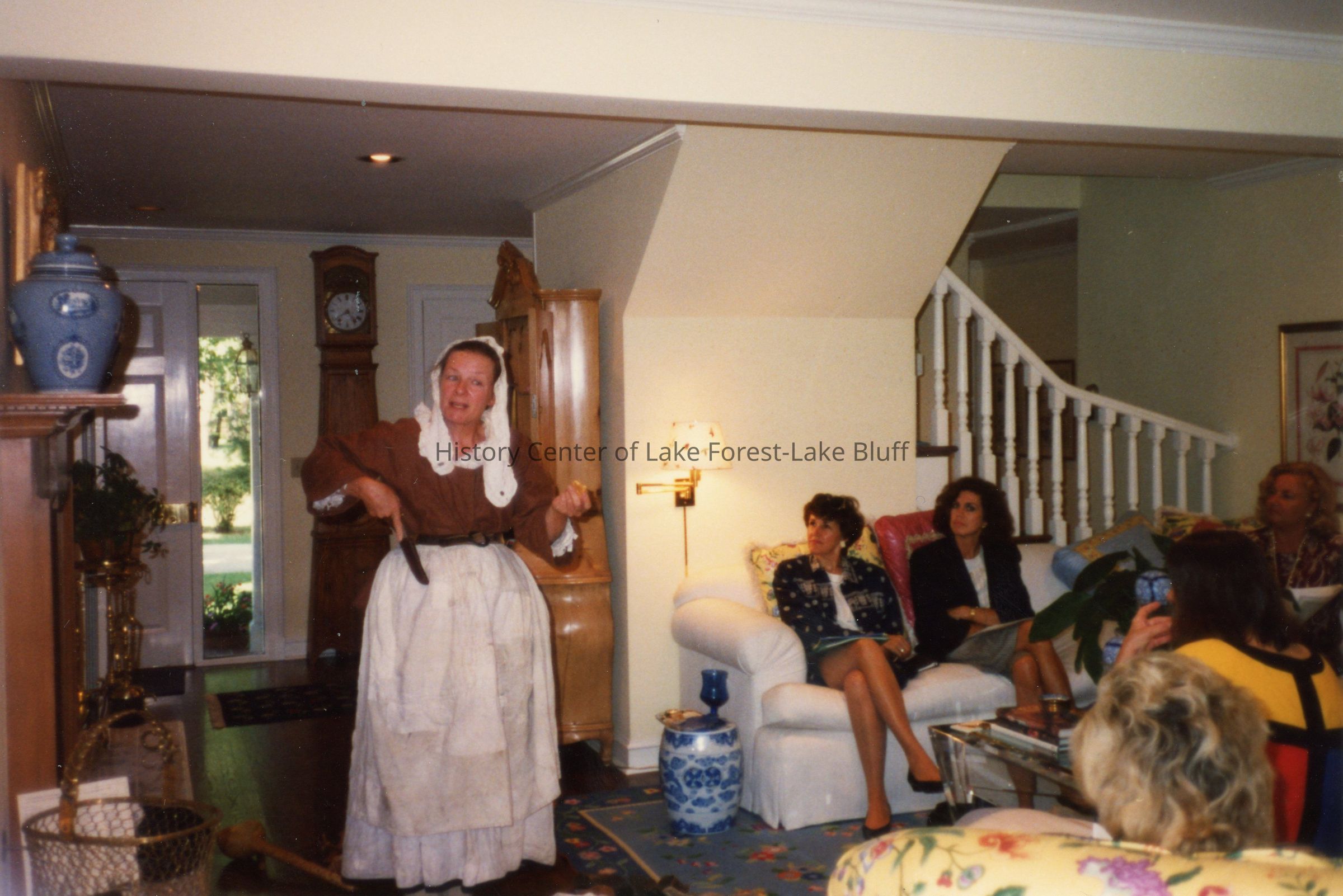 An unidentified person in historical garb talks at a Market Square Questers meeting.Photograph Details