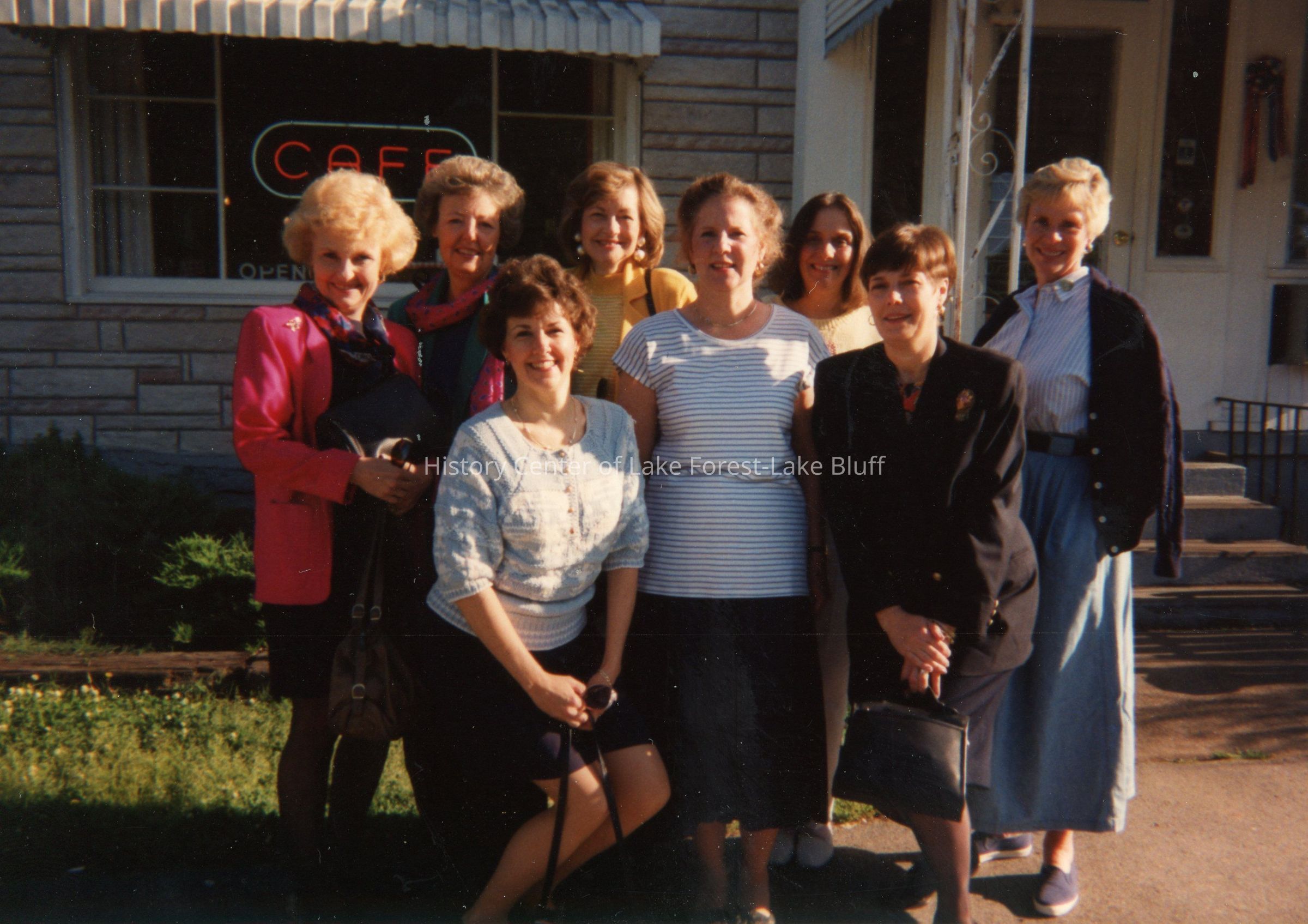 Members of the Market Square Questers pose for a photo outside a cafe.Photograph Details