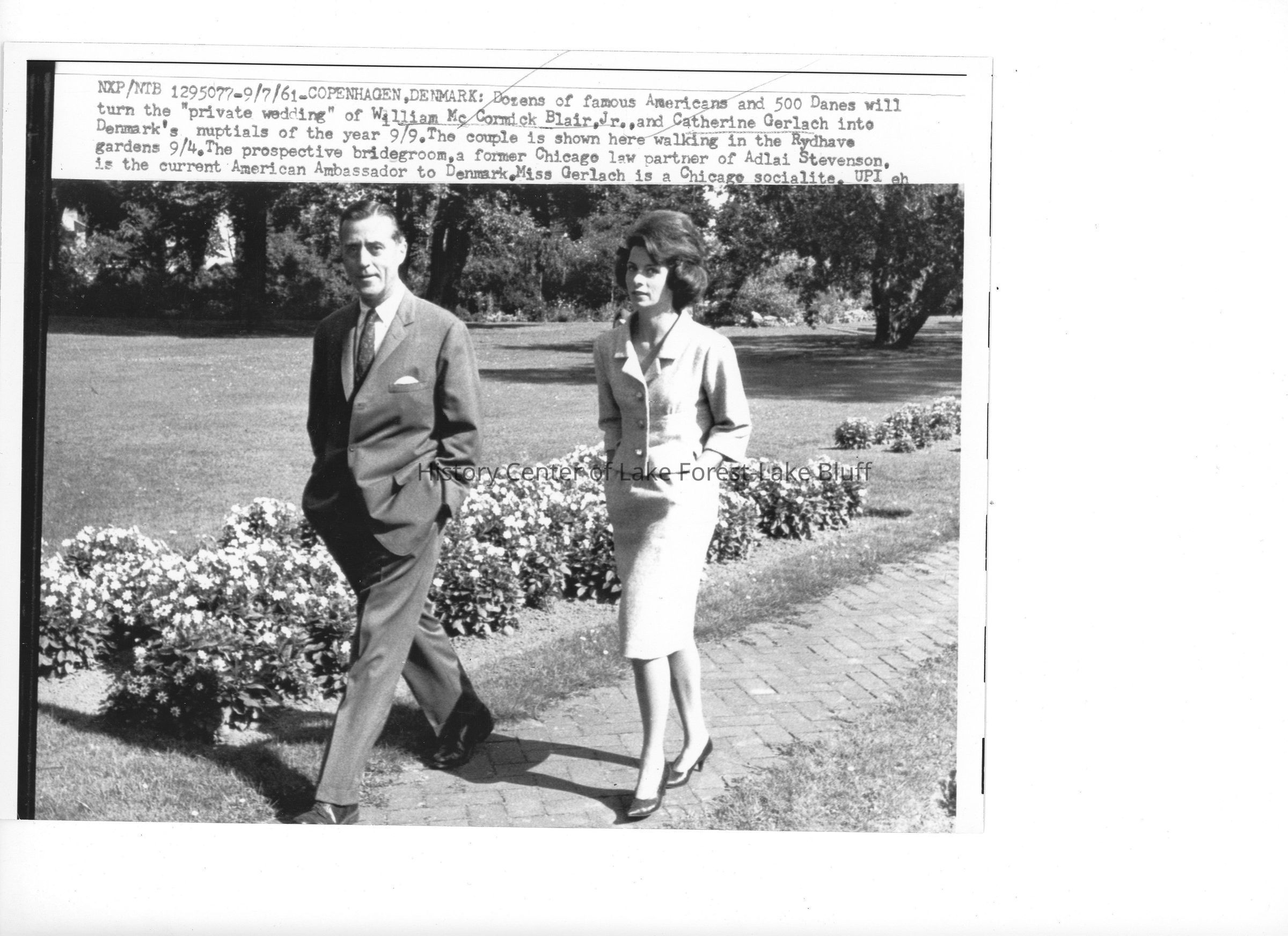 "William McCormick Blair Jr. with wife Catherine in Denmark, where Blair served as United States Ambassador. William McCormick Blair Sr. was Scottish on both sides. His father, Edward, had married into the McCormick family. With financial backing from John and Douglas Stuart, two of the Scots who founded Quaker Oats, William founded his own investment firm which is still in business today."