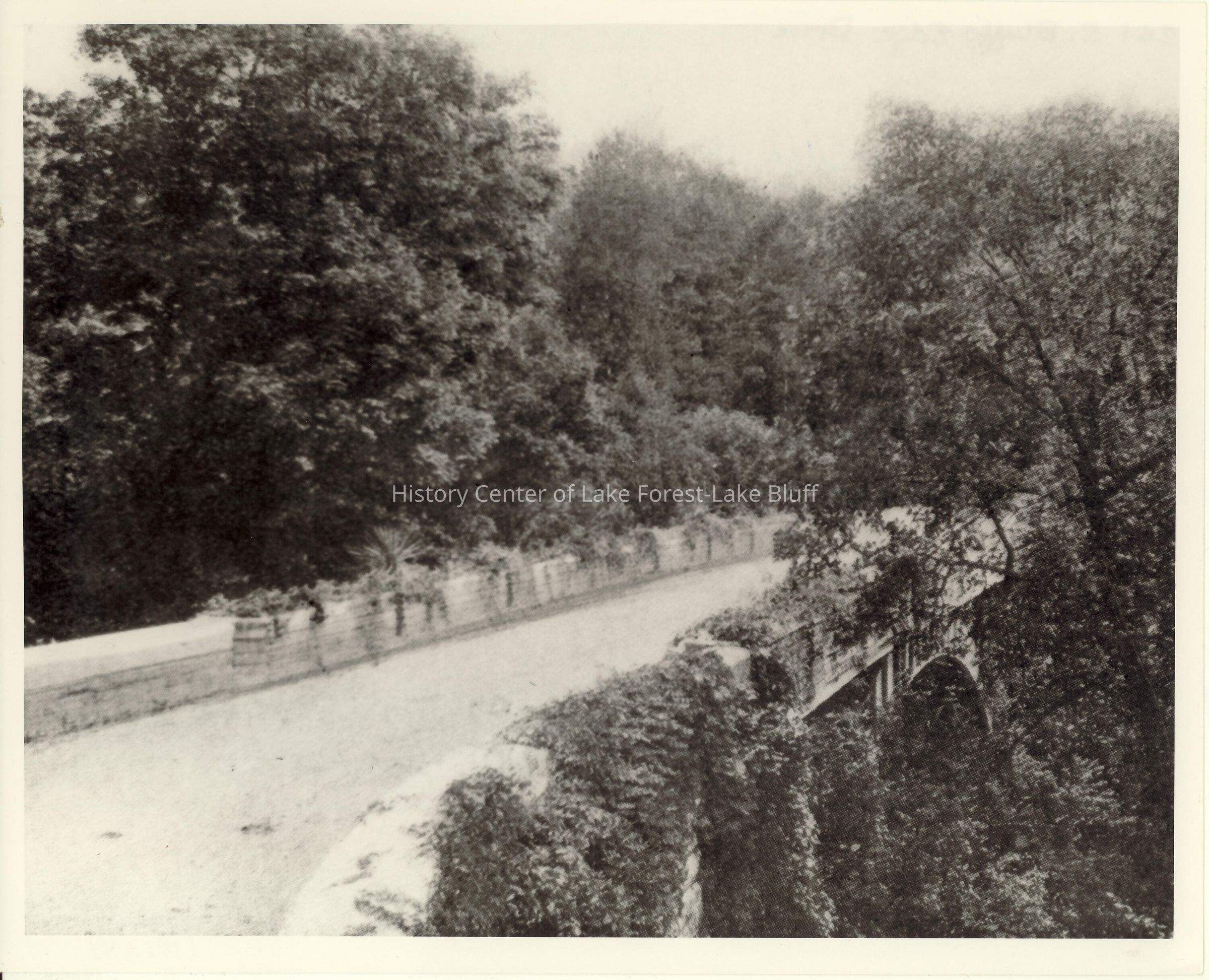 Black and white reprint of McCormick's Bridge. Ravine Bridge in Walden, Estate of the Cyrus McCormicks, Lake Forest, Illinois 261 South Bluff's Edge Drive Also known as Bluff's Edge or Walden Bridge