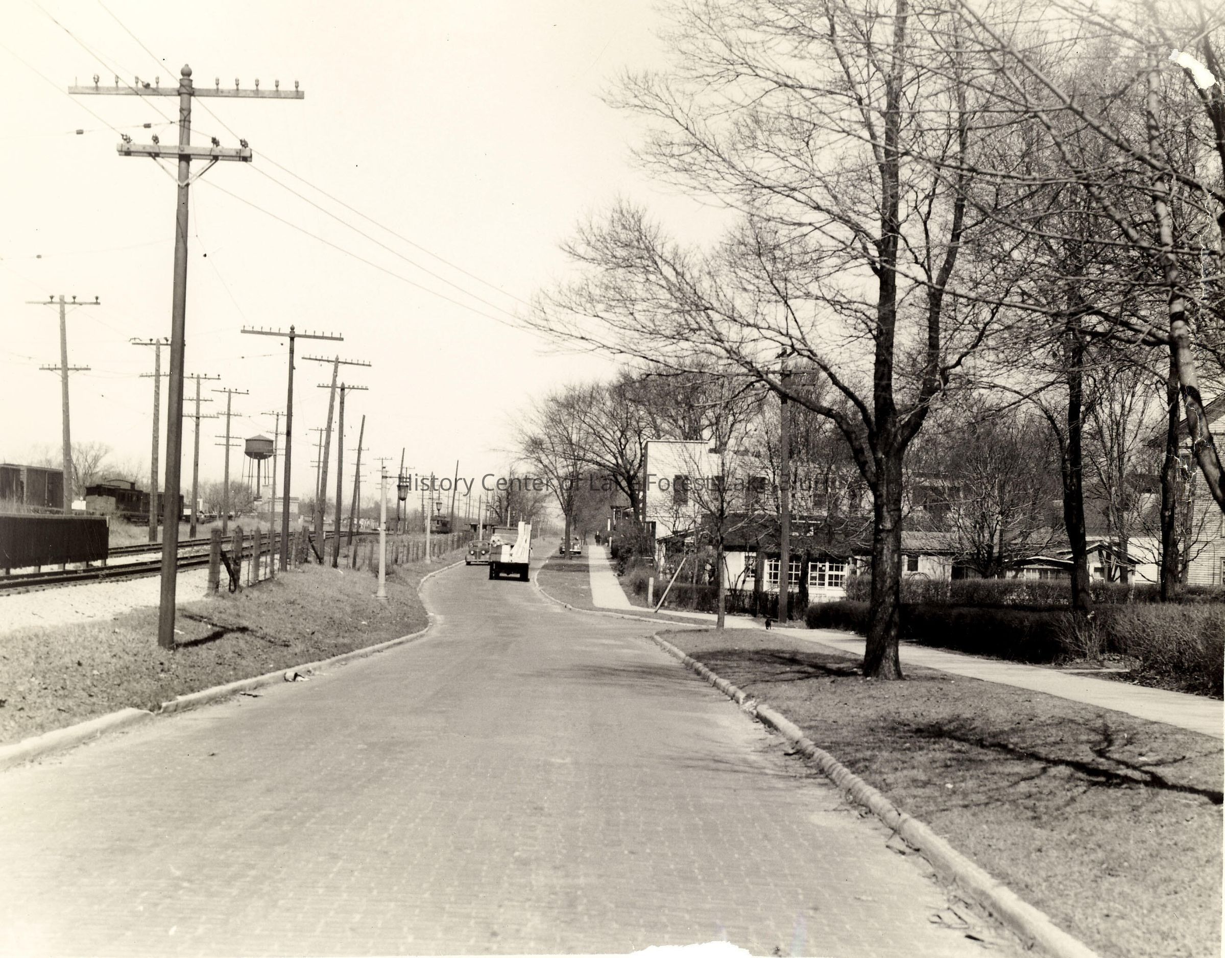 McKinley Road looking north toward Wisconsin Avenue. Part of McKinley appears to be paved in brick. 1930s-1940s.