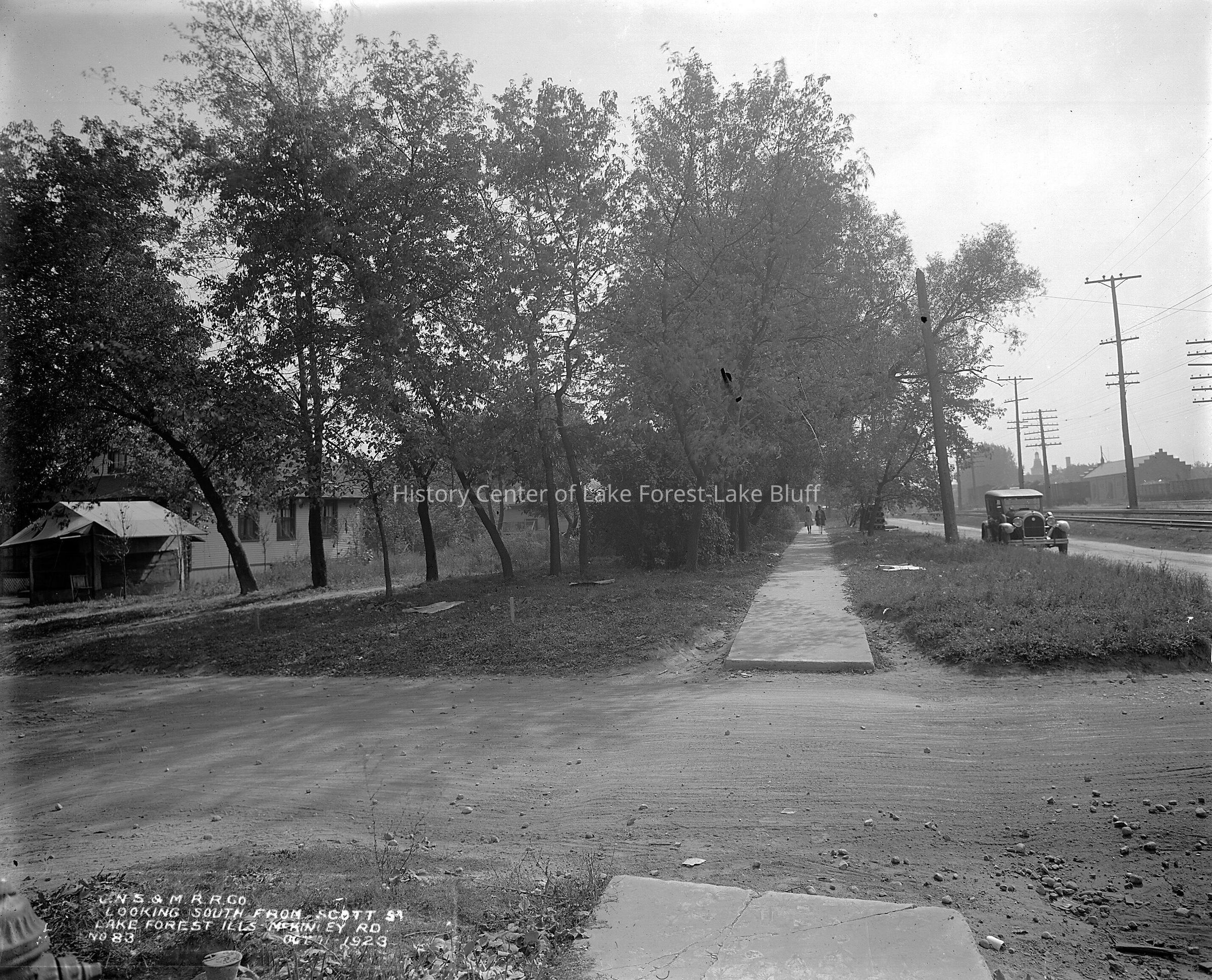 Chicago, North Shore & Milwaukee Railroad Looking south on McKinley Road in October 1923 from near Granby Road we can see where house were located before being moved to provide for a new alignment of McKinley Road. images are also on a CD (1982.3.1 - 1982.3.29)