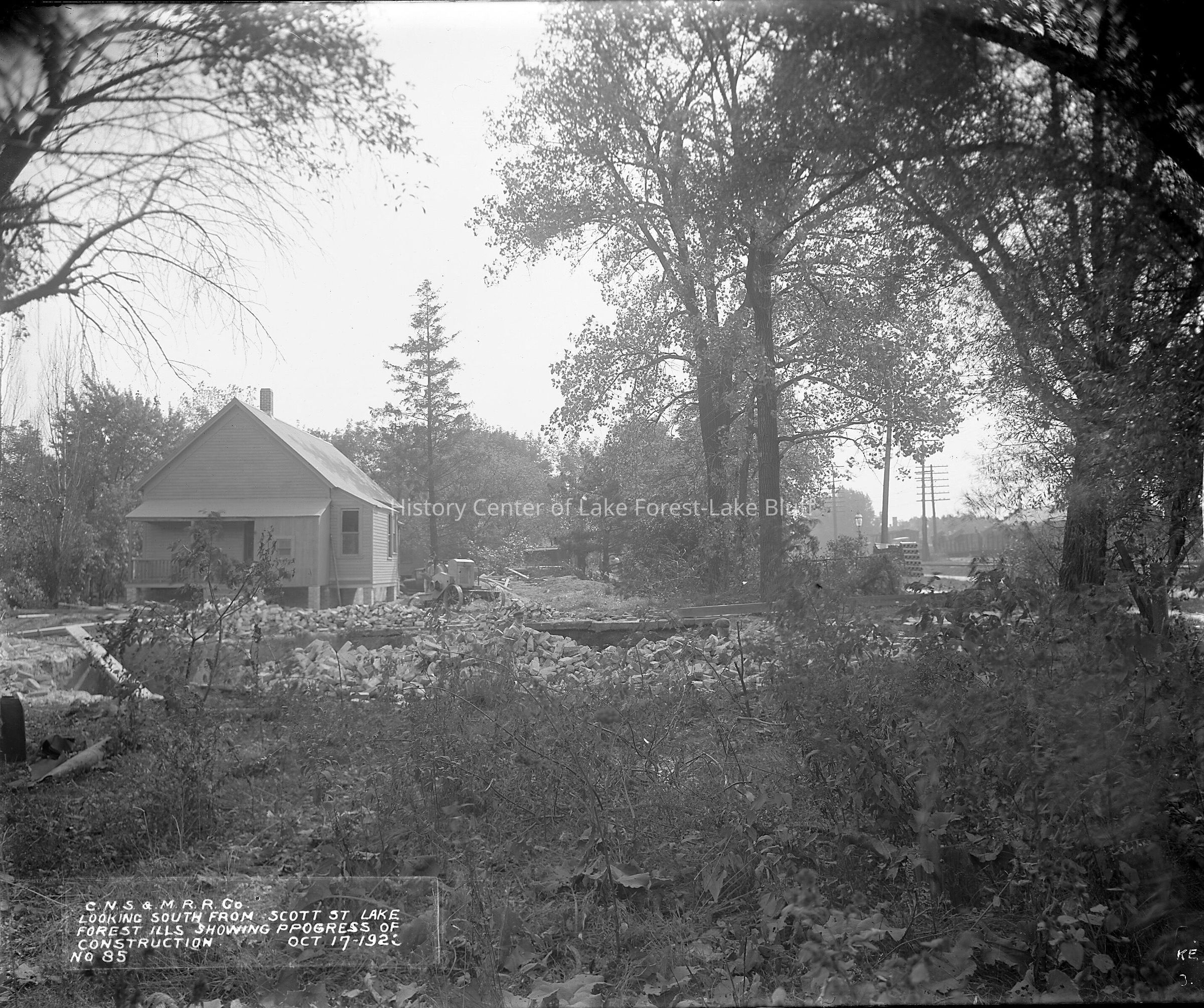 Chicago, North Shore & Milwaukee Railroad McKinley Road looking south from Scott Street in October 1923 that what will become the alignment of the new McKinley Road images are also on a CD (1982.3.1 - 1982.3.29)