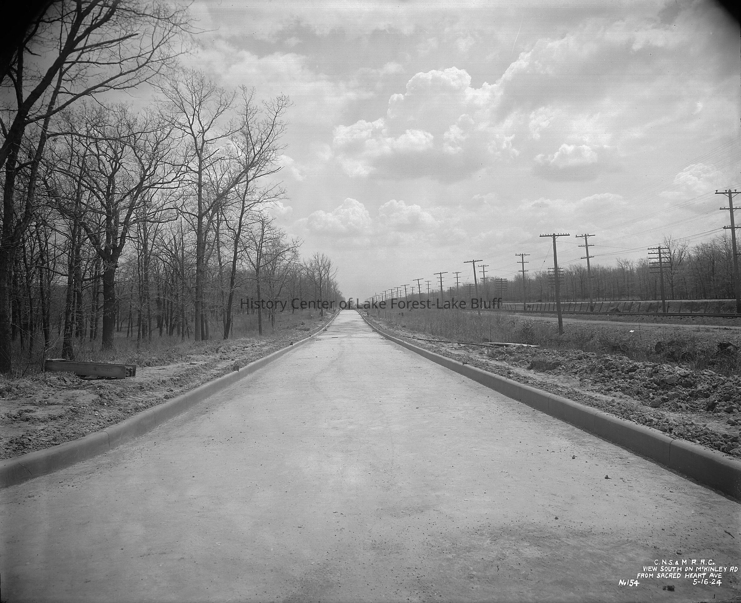 Chicago, North Shore & Milwaukee Railroad Prior to the construction in 1923-1924 there was no road east of the railroad tracks between Westleigh and Old Elm Roads. We are looking south from Westleigh near the Sacred Heart Academy (Barat College) on May 16, 1924. images are also on a CD (1982.3.1 - 1982.3.29)
