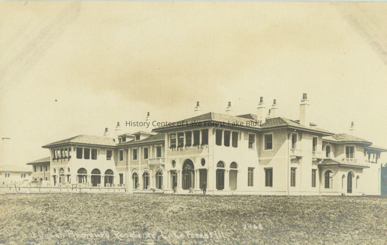 rear view of main house - J. Ogden Armour estate, Mellody Farm reverse is blank Mellody Farm 1500 West Kennedy Road Lake Forest John Ogden Armour and Lolita Sheldon Armour Arthur Heun Ossian C. Simonds; Jens Jensen 1904-1908 Now Lake Forest Academy