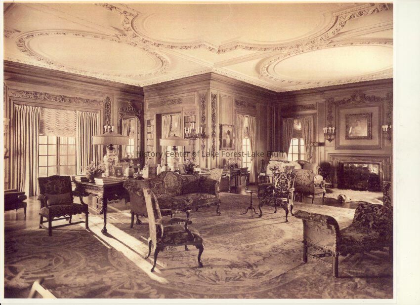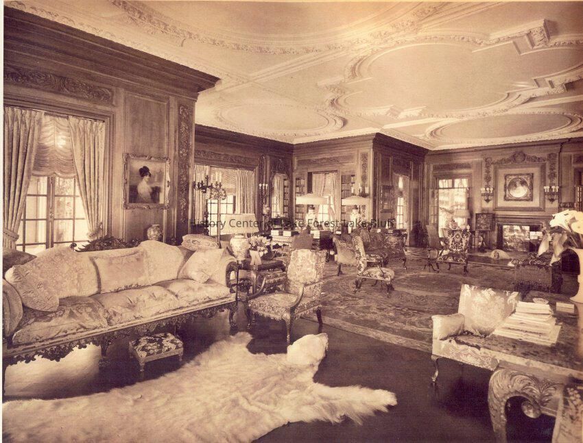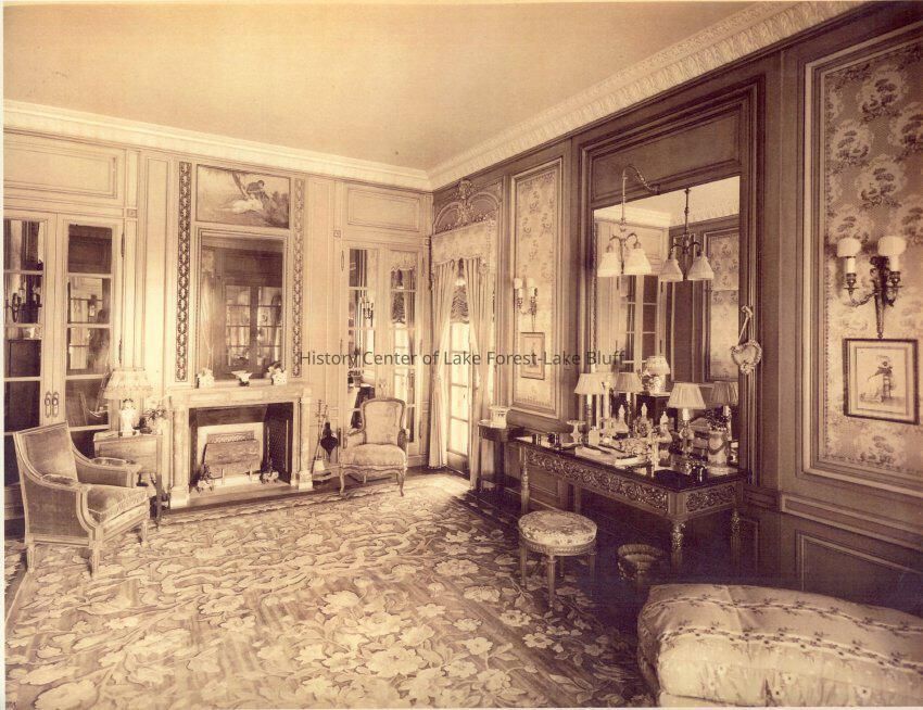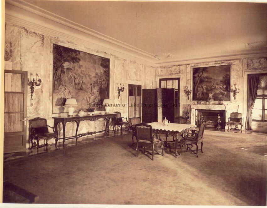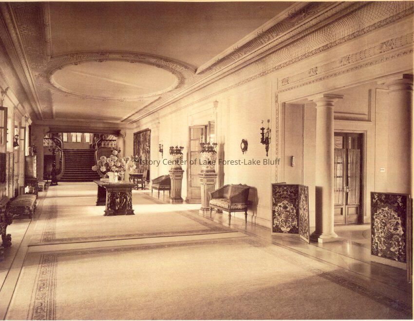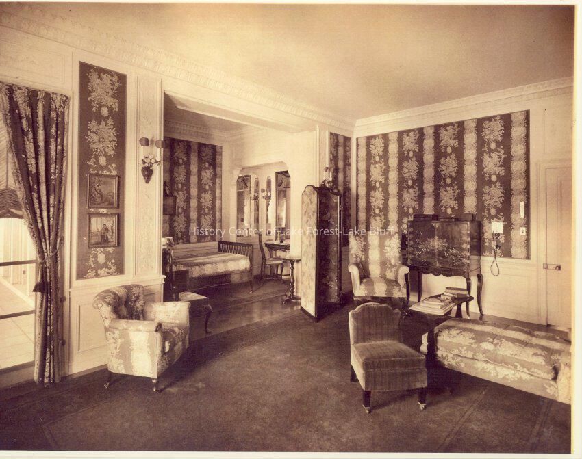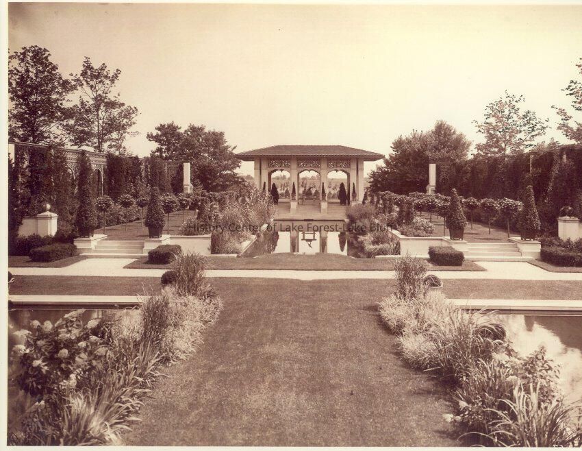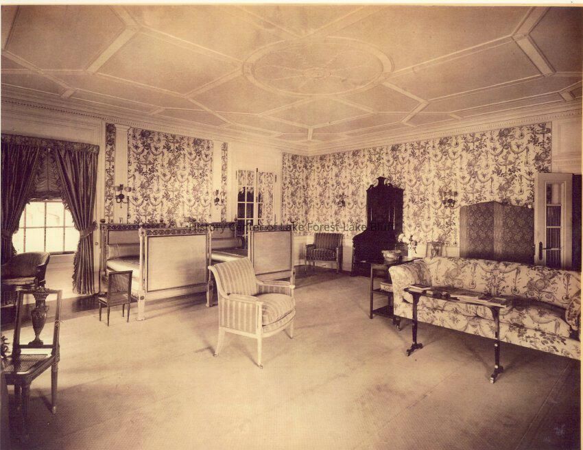 35 black and white exterior and interior photograph reproductions of Mellody Farm, circa 1920s. The J.Ogden Armour estate at 1500 West Kennedy Road now the Lake Forest Academy. 1904-1908 by Arthur Heun and landscape desginer Jens Jensen.